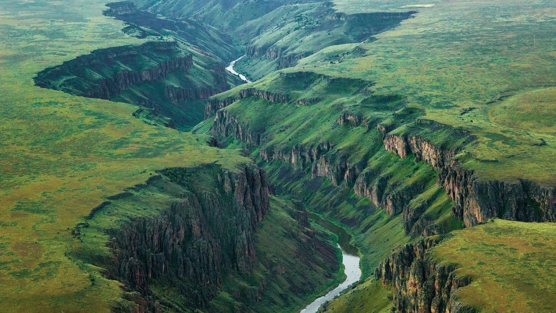 Rivière de montagne entre deux gorges - fond d'écran de bureau