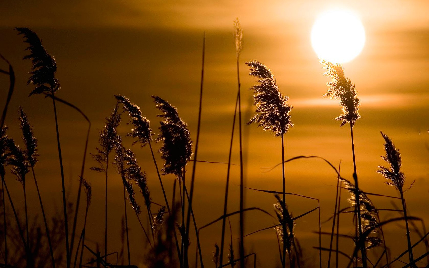 Roseaux gracieux sur fond de soleil - fond d'écran de bureau