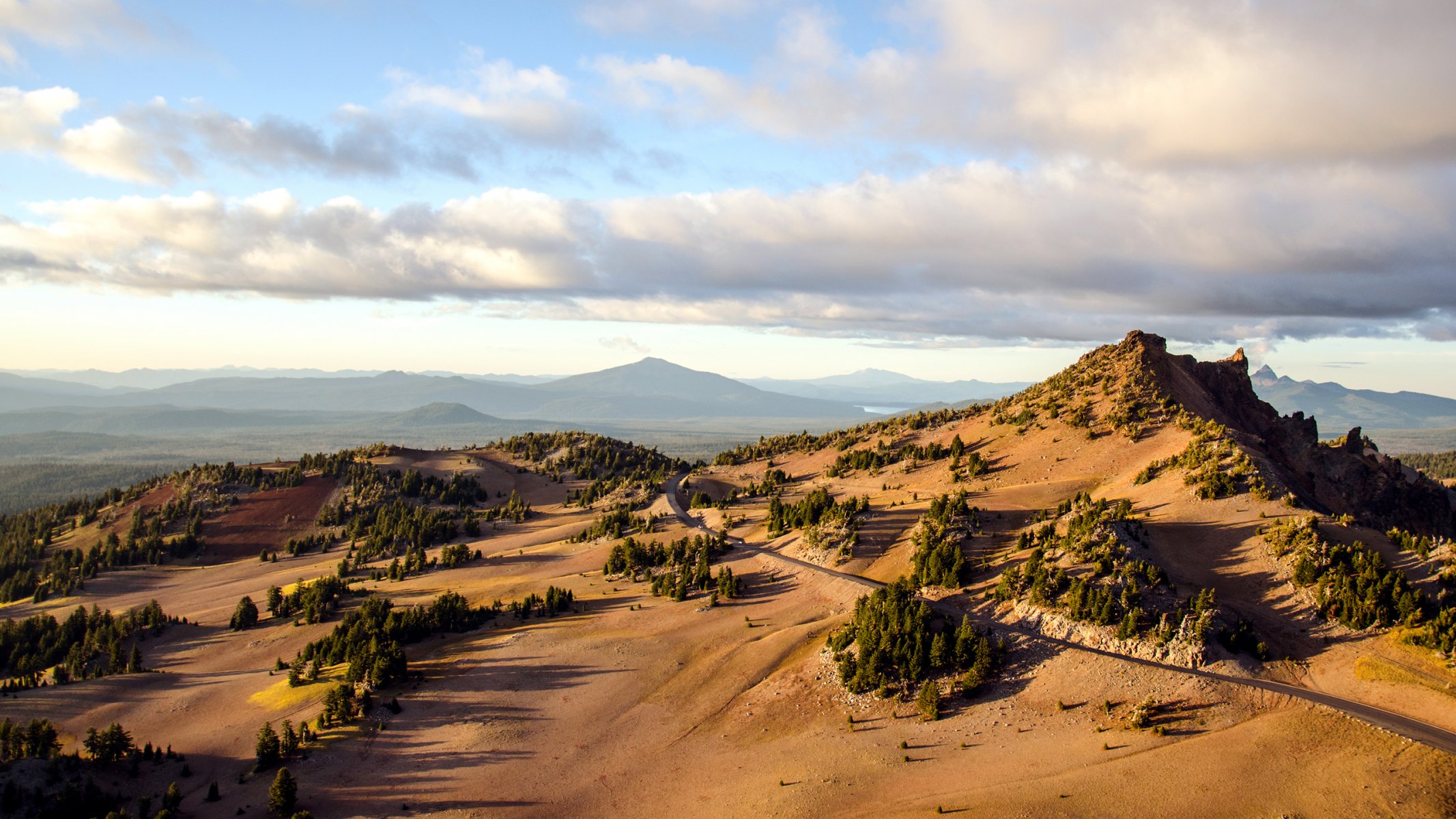 Tags:ciel, nuages, montagnes, vallée, arbres, route