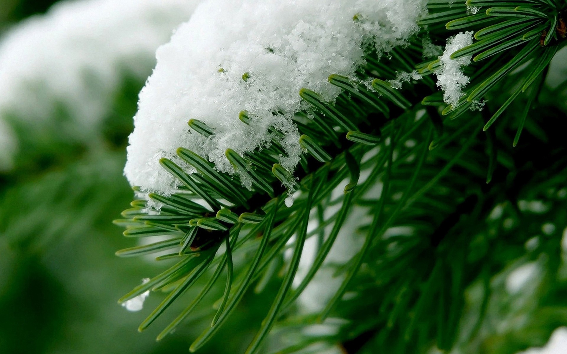 Bonnet de neige sur une branche verte - fond d'écran de téléphone