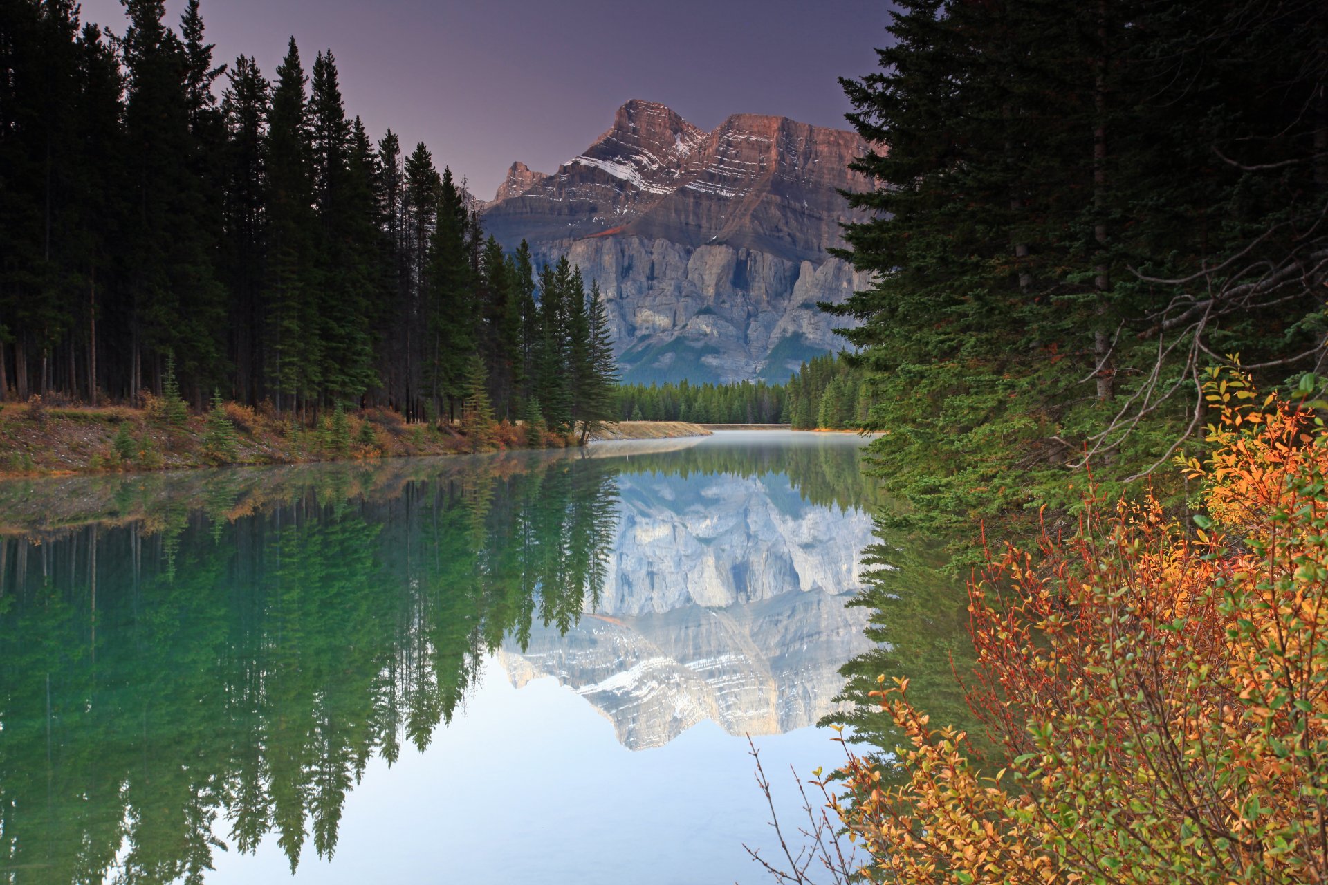 Forêt verte chic, rivière et montagnes - fond d'écran de téléphone