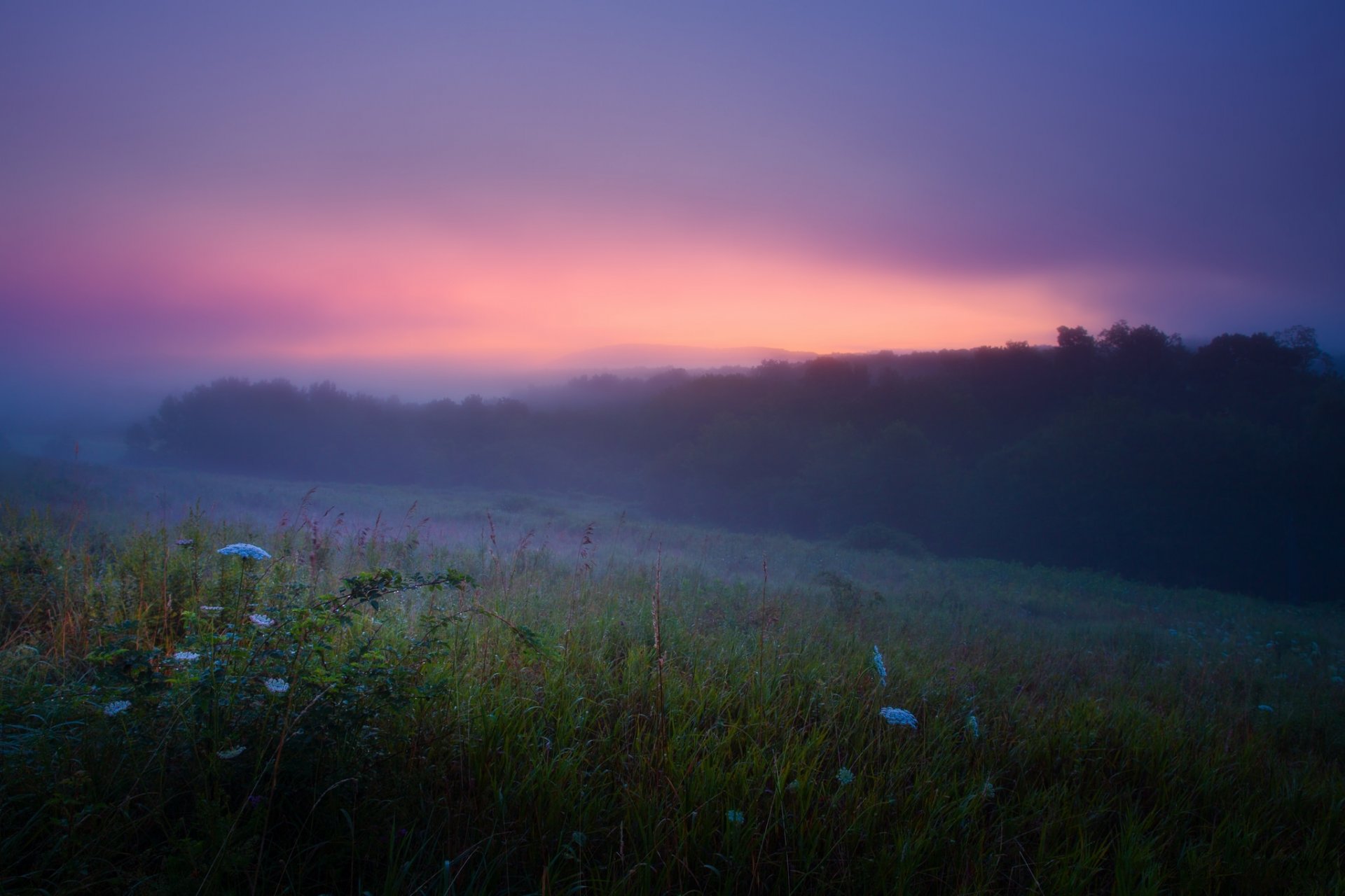 Matin d été tôt avec brouillard - fond d'écran de téléphone