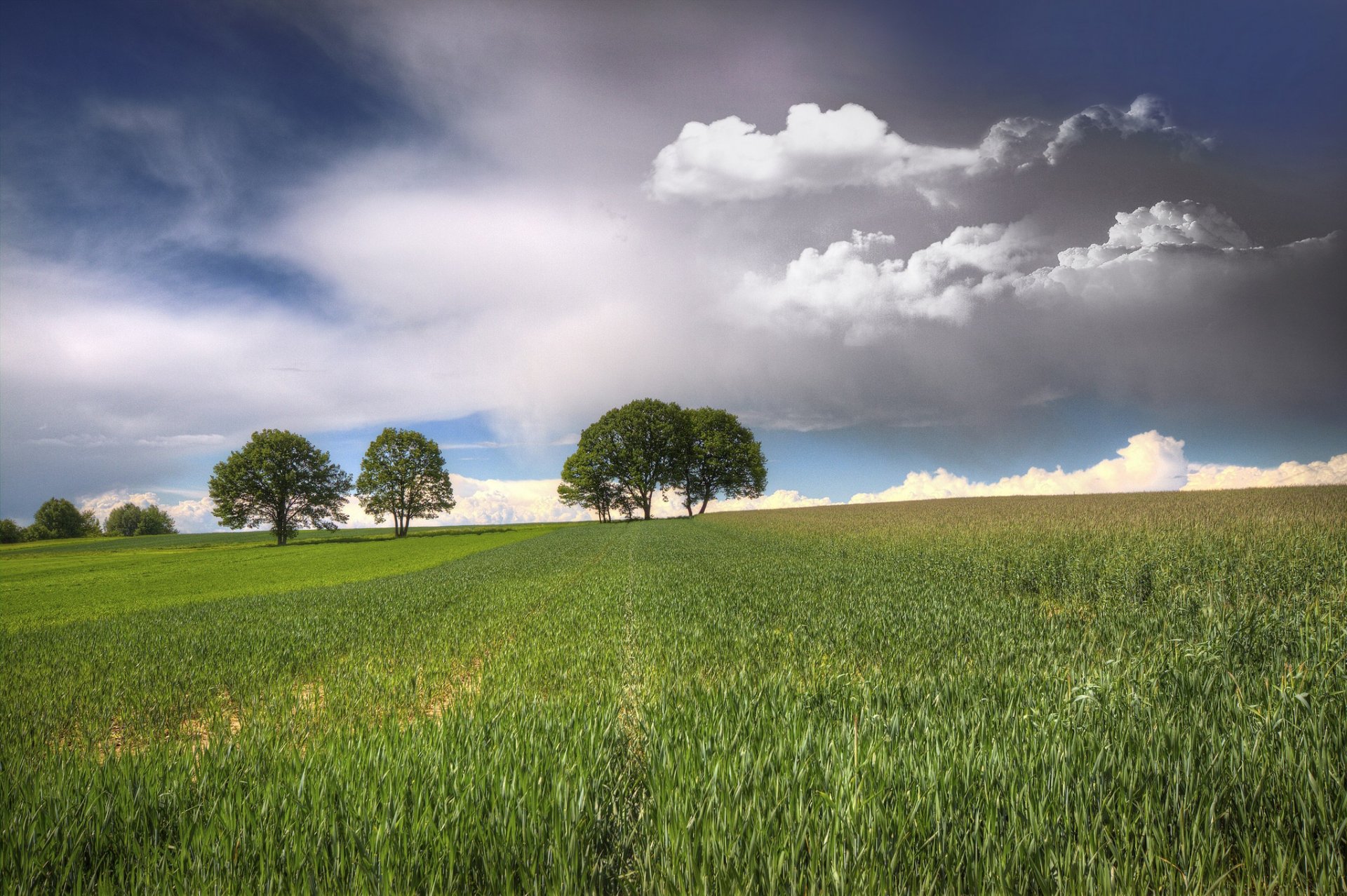 Nuages blancs et gris sur le vert - fond d'écran de téléphone