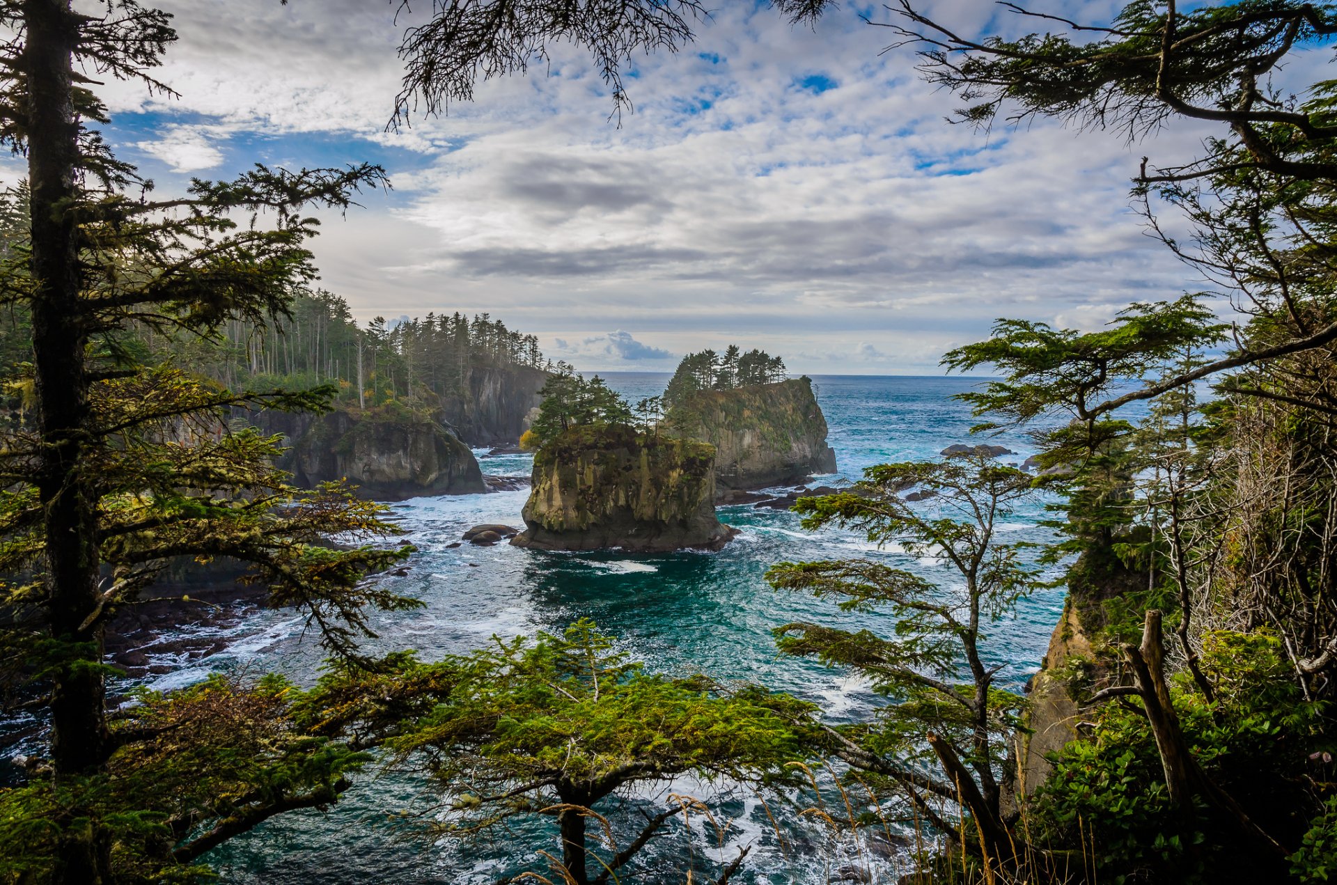 Tags:ciel, nuages, mer, rochers, arbres, île