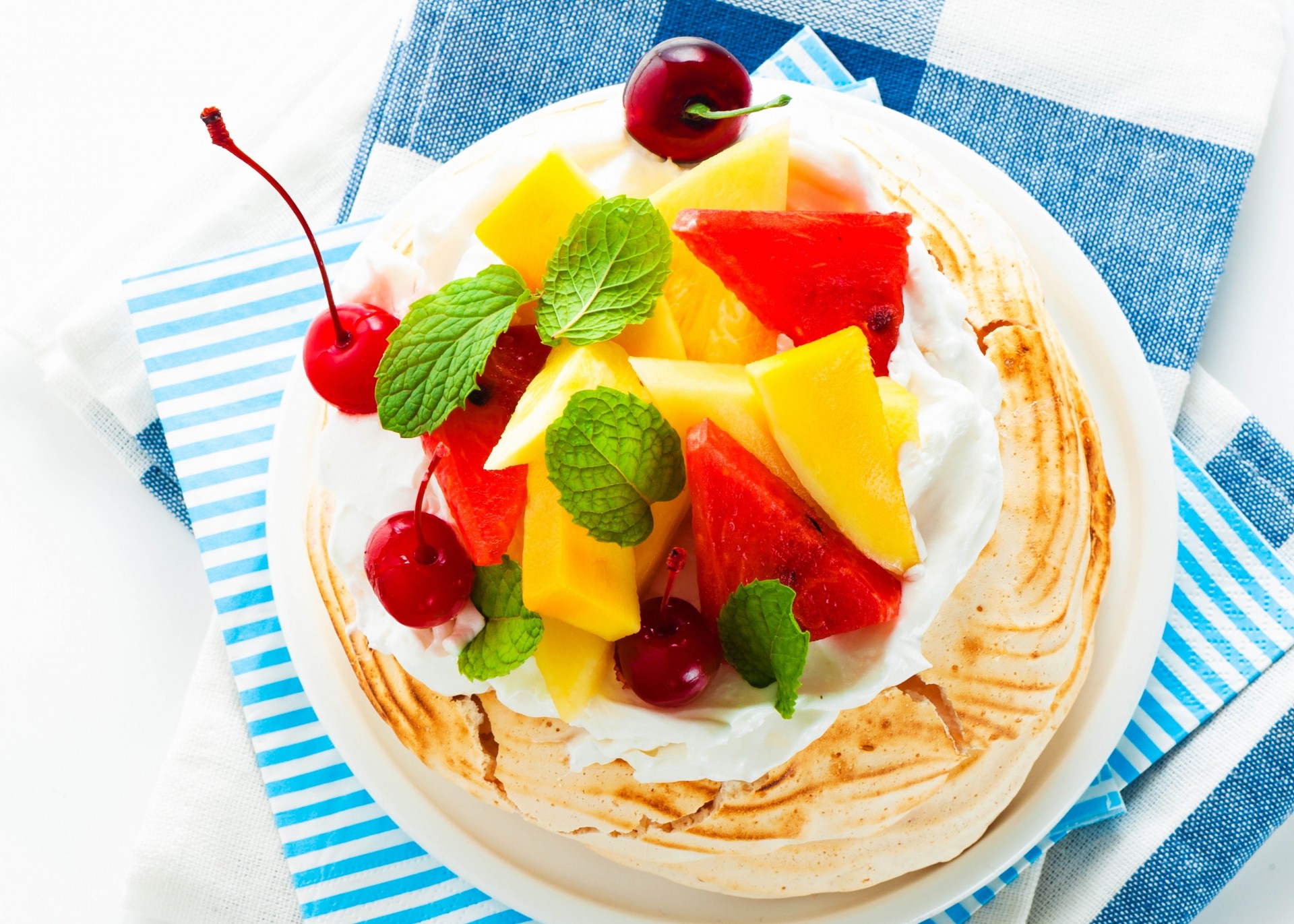 Dessert avec des tranches de fruits sur fond blanc - fond d'écran de bureau