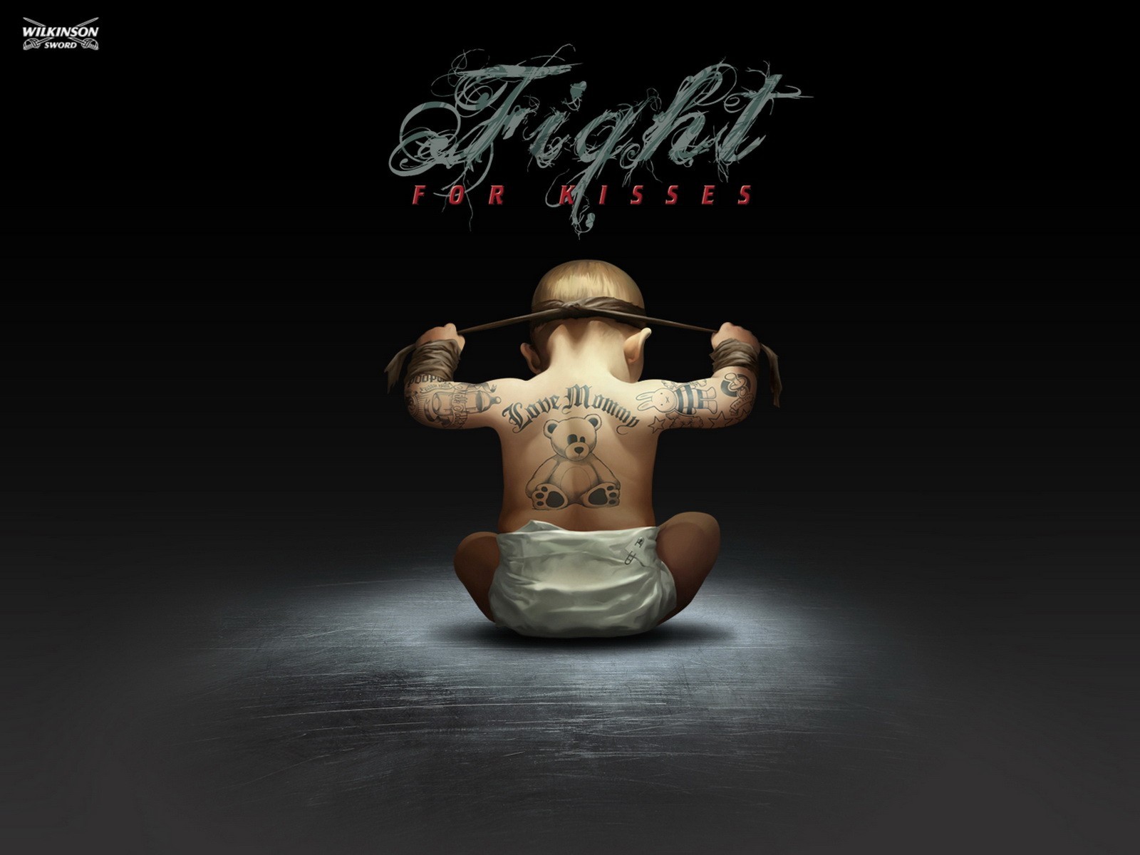 Enfant en bas âge avec des tatouages sur fond gris - fond d'écran de bureau