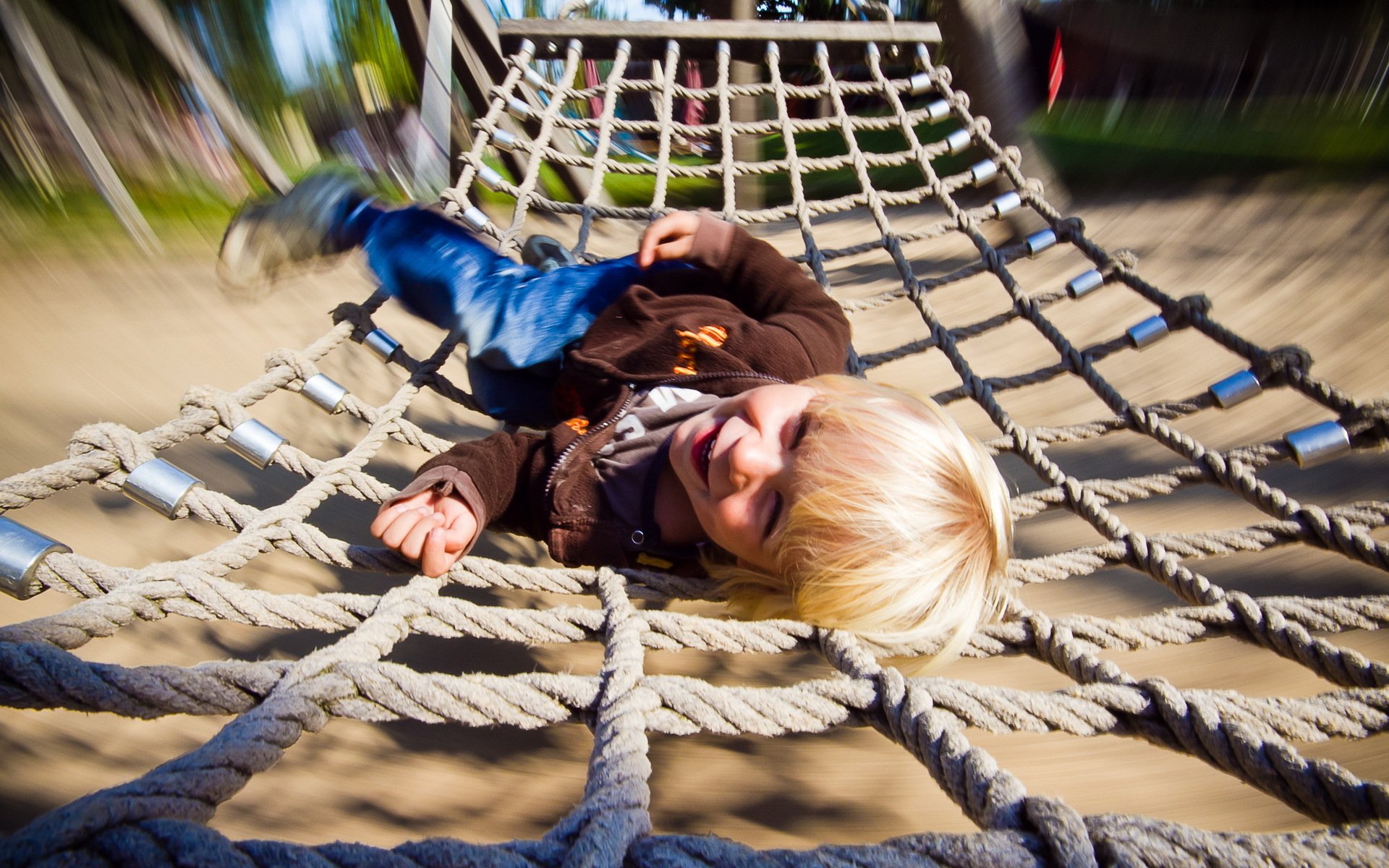 Garçon de bonne humeur se trouve dans un hamac - fond d'écran de bureau