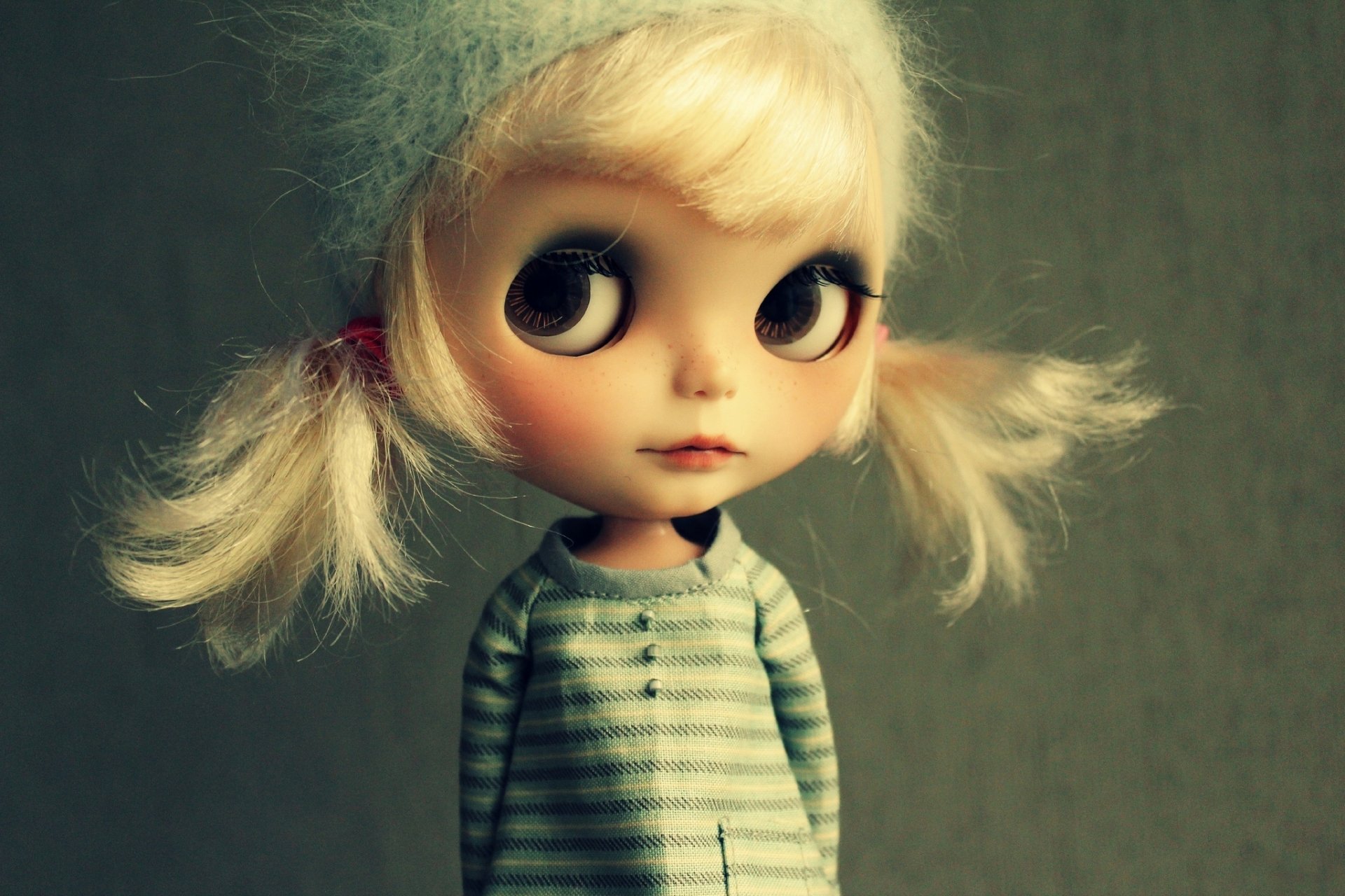Tags:poupée, jouet, blonde, à la recherche, regard, veste, chapeau, queues de cheval, yeux, visage