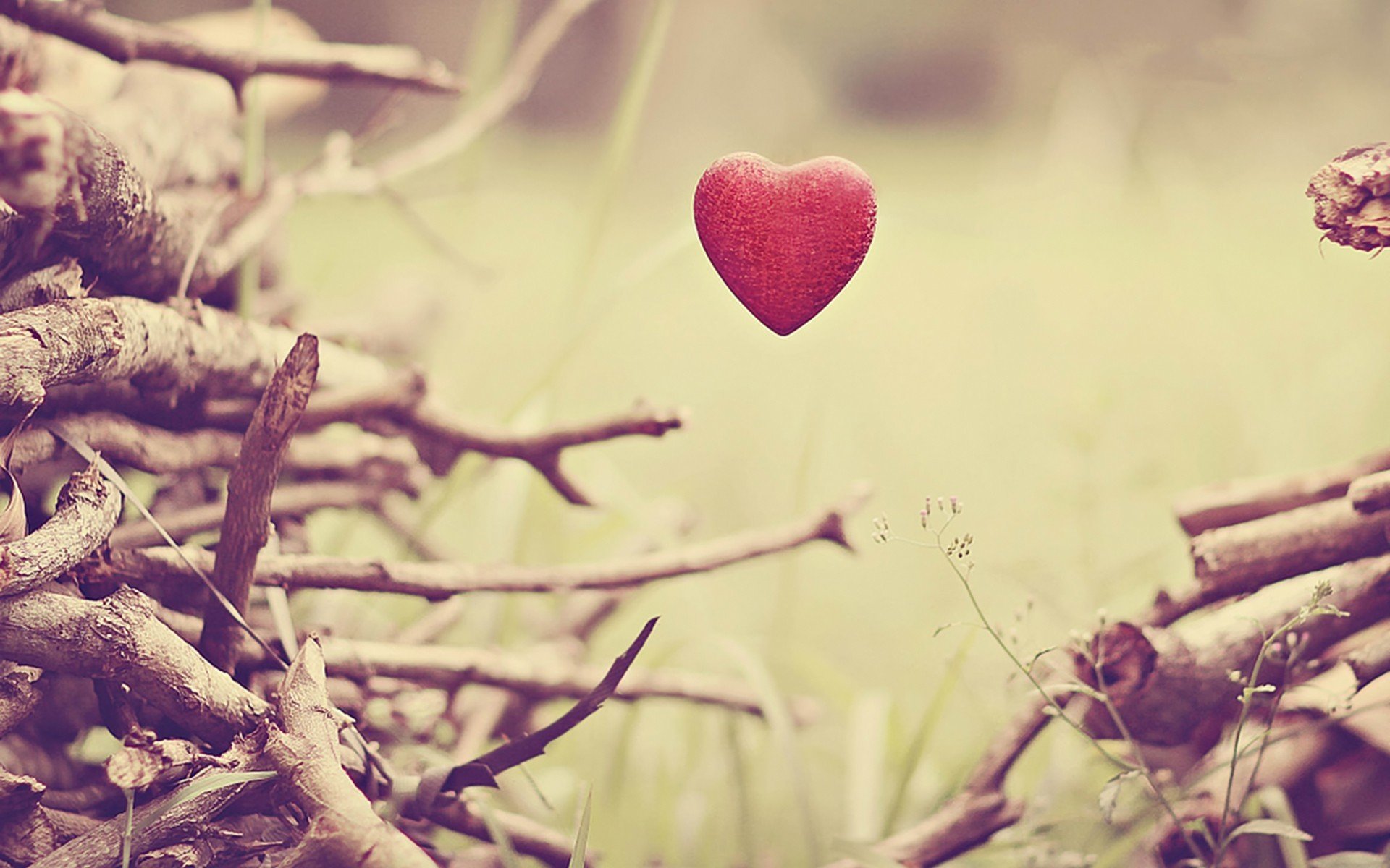Un coeur en apesanteur plane parmi les brindilles d une image inhabituelle - fond d'écran de bureau