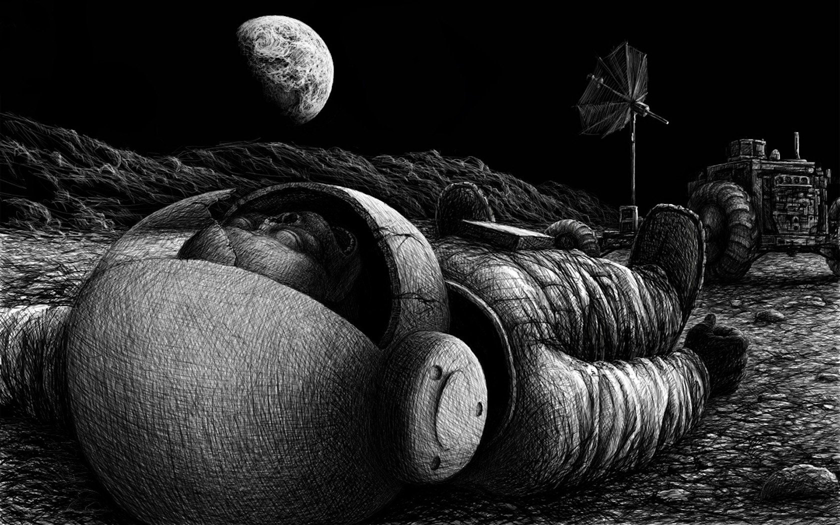 Dessin d un astronaute mourant en traits - fond d'écran de bureau