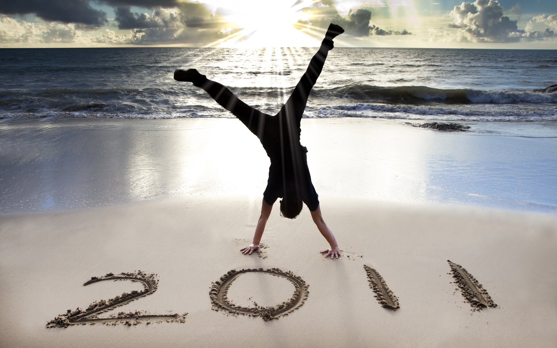 Tags:plage, sable, mer, côte, chiffres, année, homme, mains, horizon, ciel, nuages, soleil, lumière