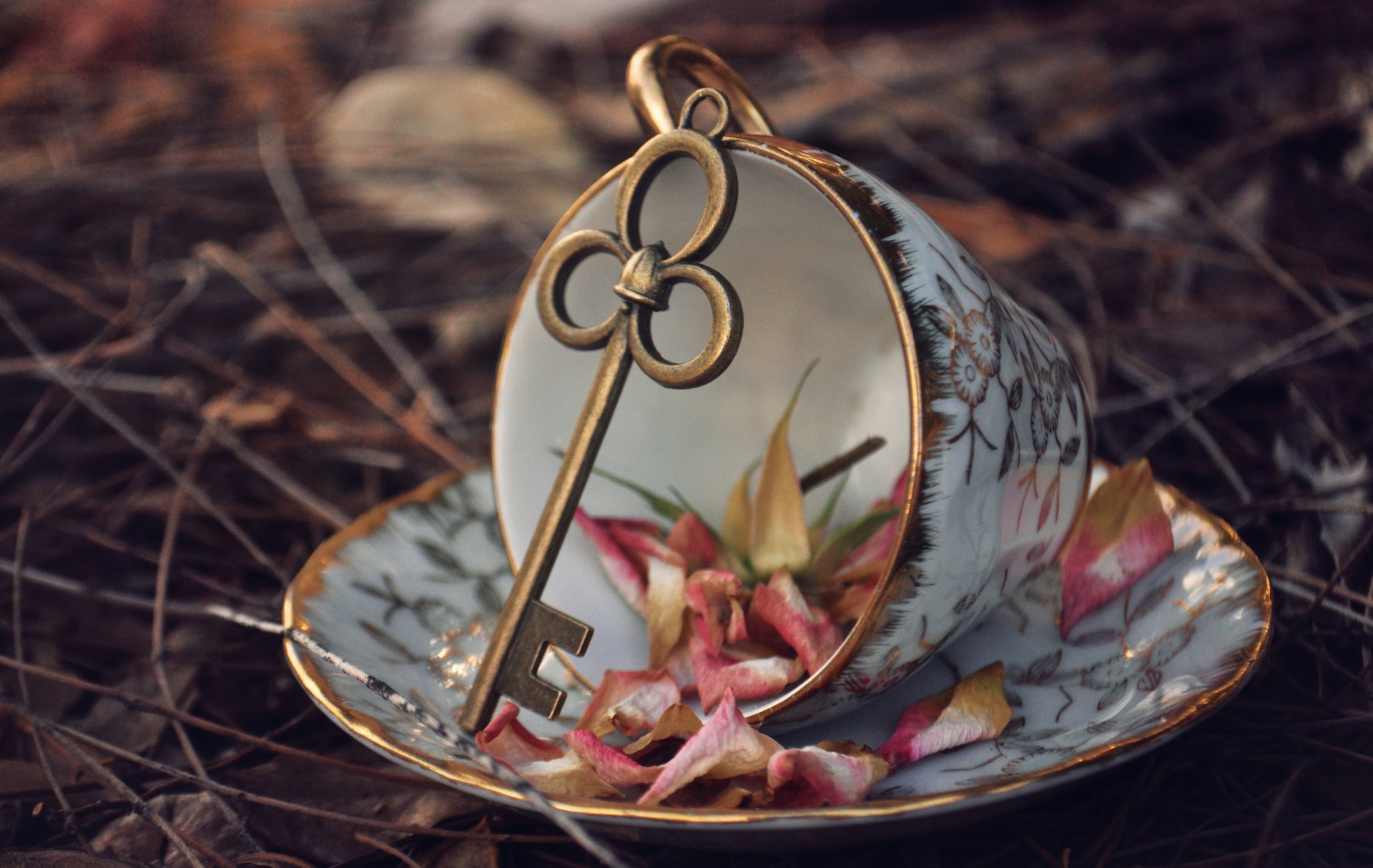 La clé d or sur la tasse avec soucoupe - fond d'écran de téléphone