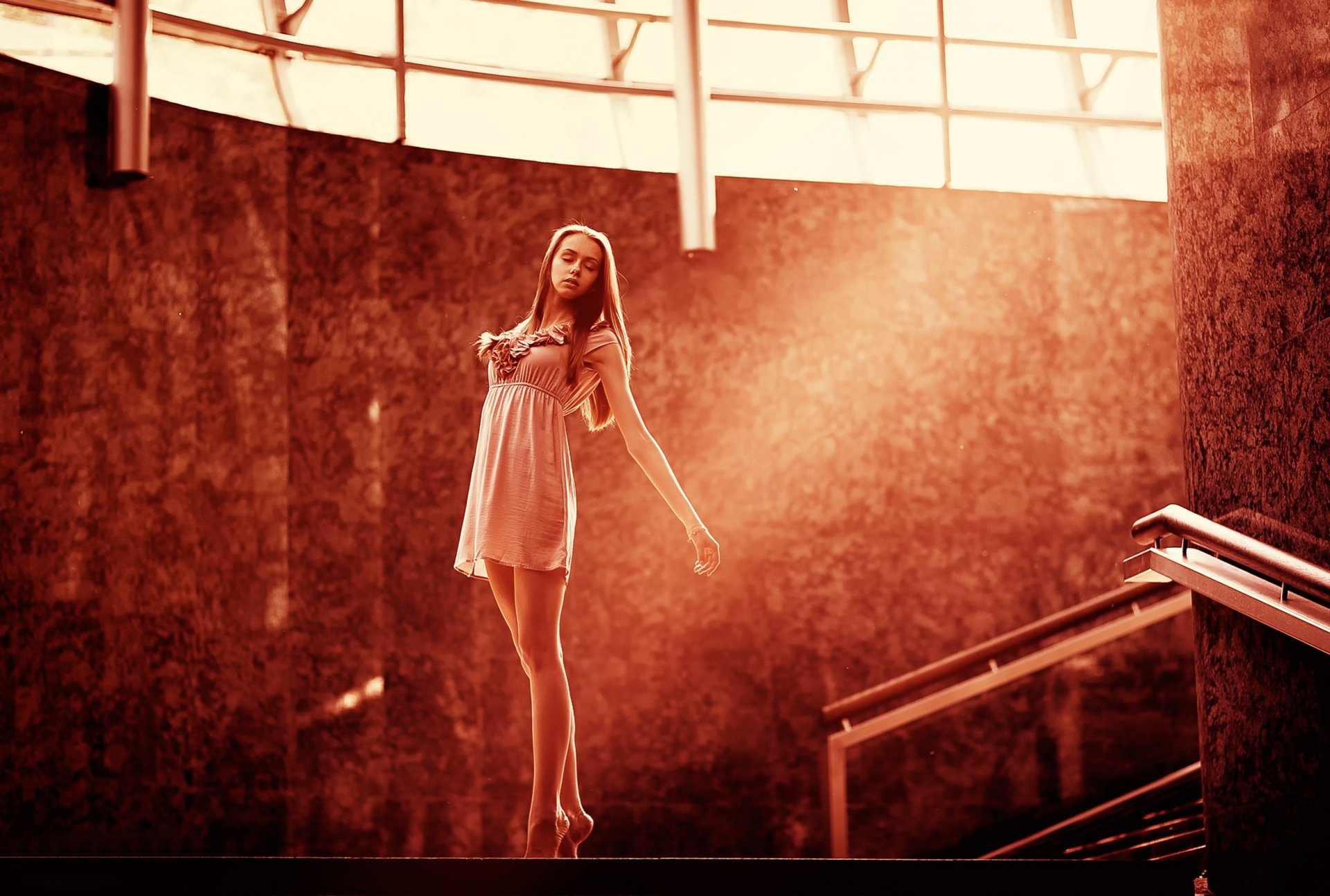 La jeune fille danse dans le rouge, à l intérieur - fond d'écran de téléphone