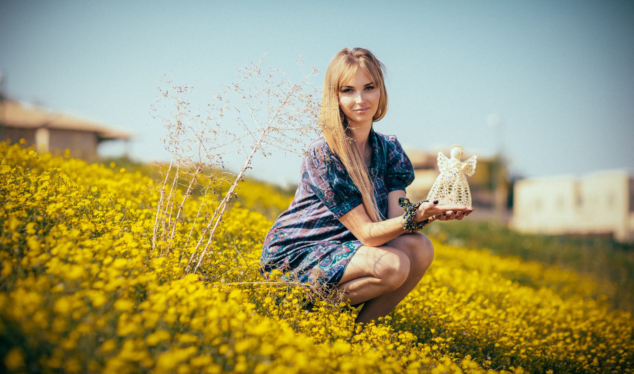 Tags:le sourire, la robe, l'été, les fleurs sont jaunes, jeune fille