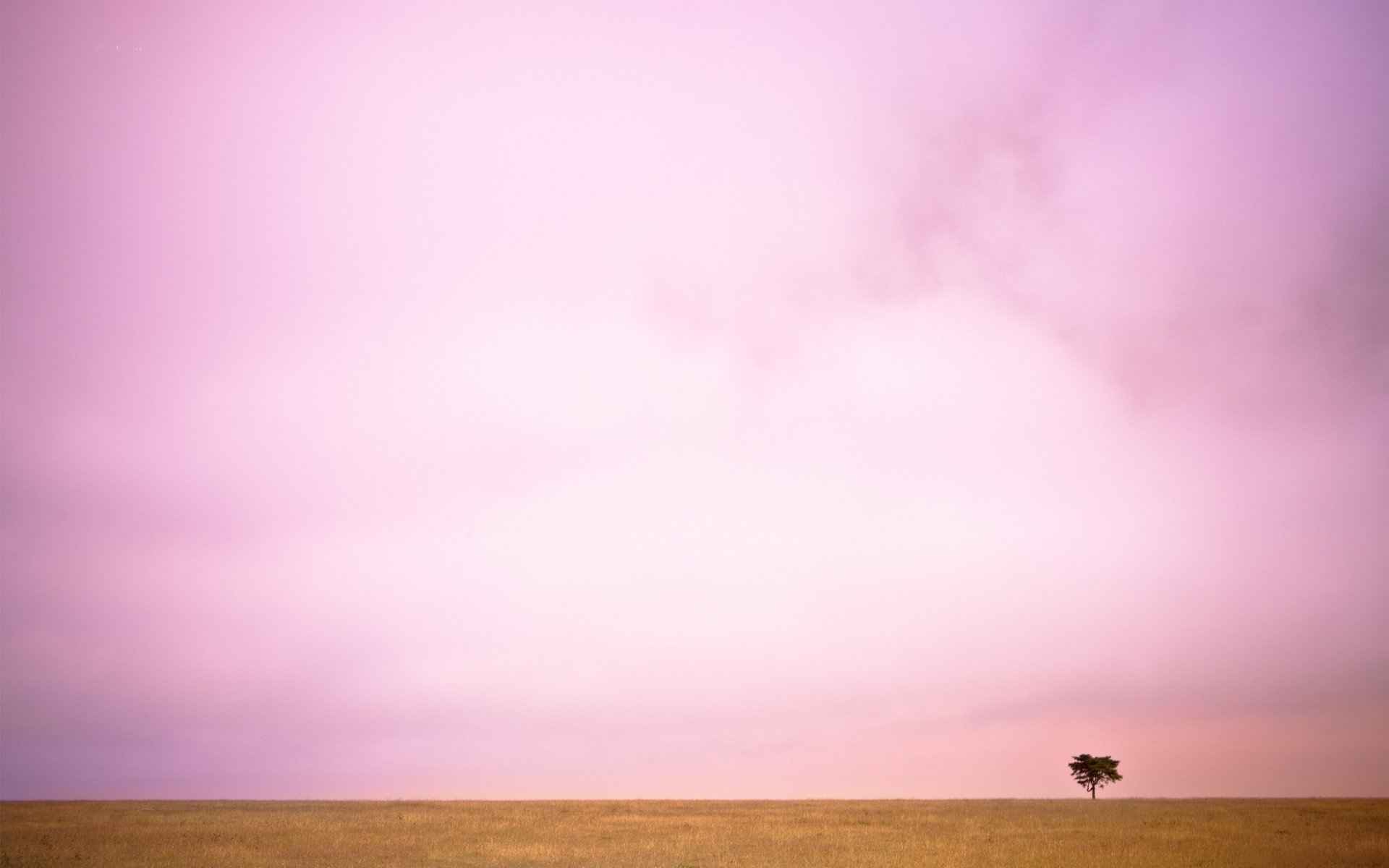 Arbre solitaire dans un immense champ - fond d'écran de bureau