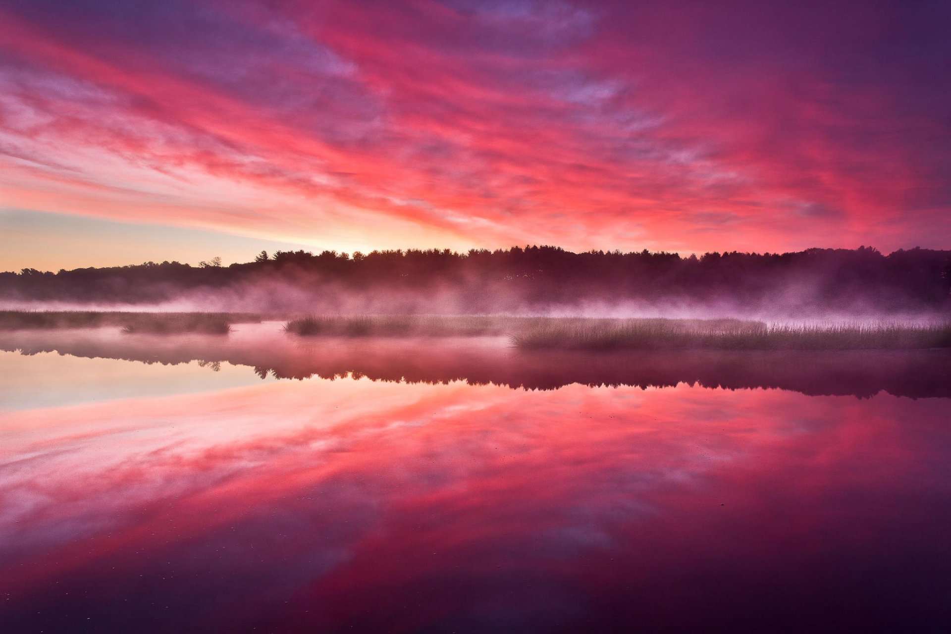 Aube brûlante près du lac - fond d'écran de bureau