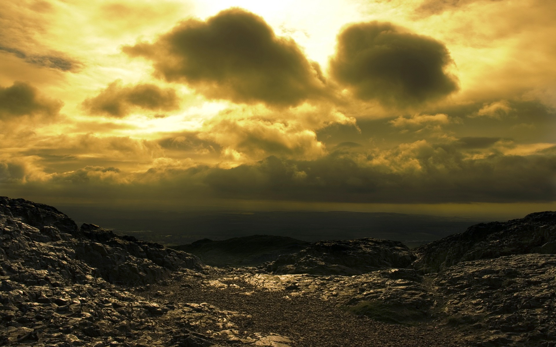 Aube sur la mer avec de gros nuages - fond d'écran de bureau