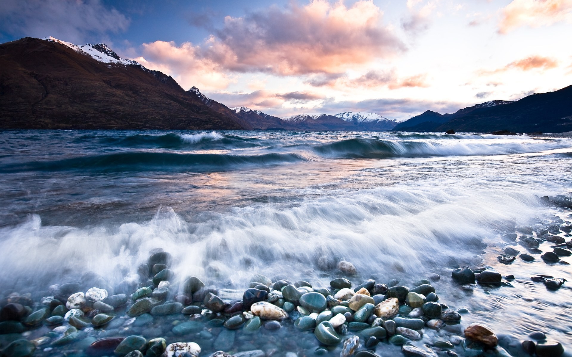 Brise de mer avec vue sur la montagne - fond d'écran de bureau