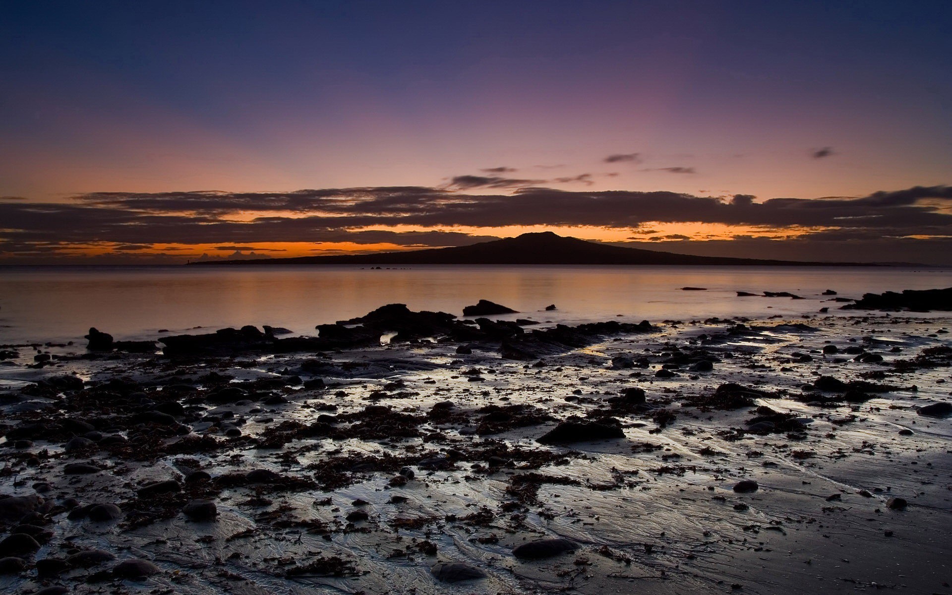 Côte rocheuse au coucher du soleil - fond d'écran de bureau