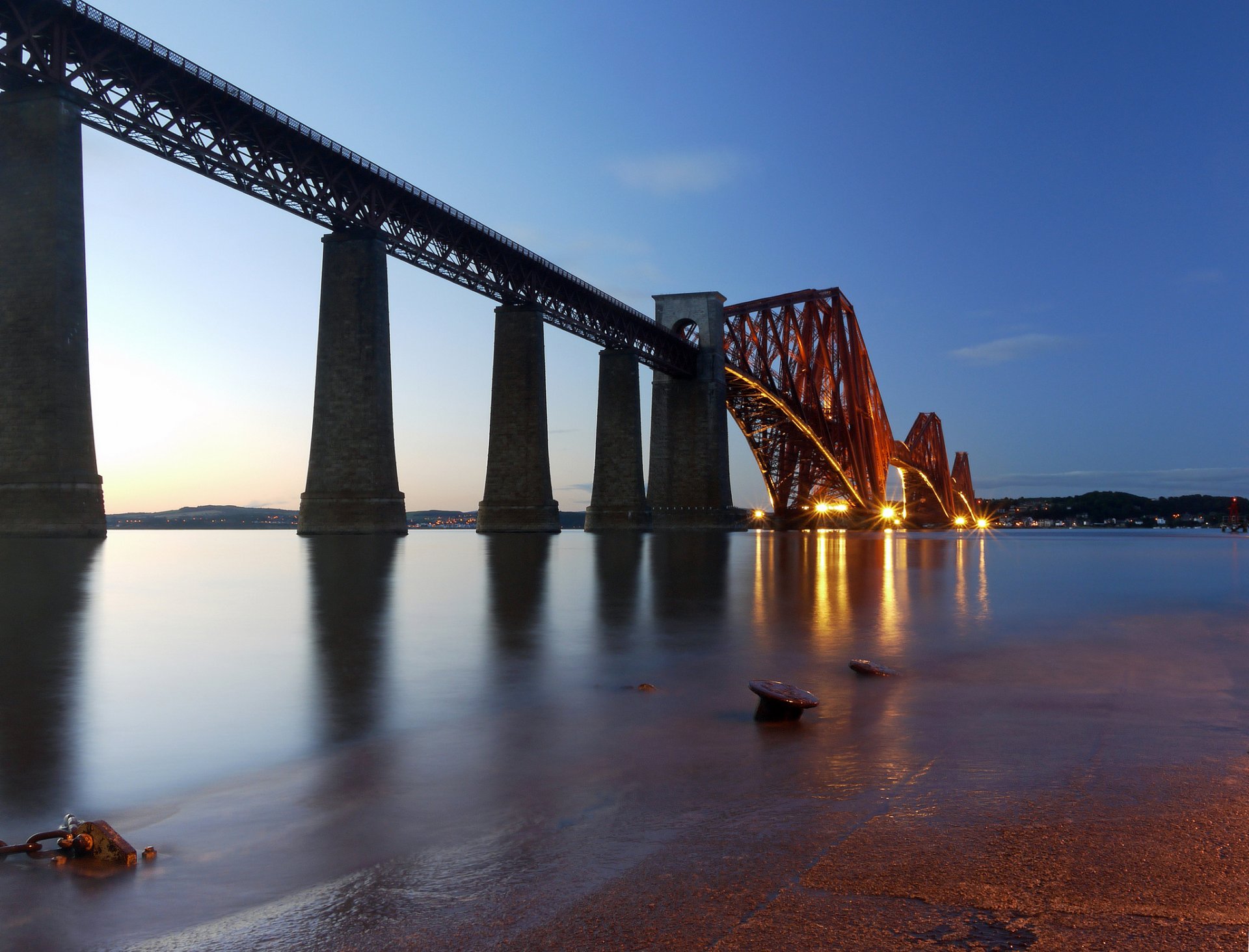 eau rivière pont soirée lumières ciel
