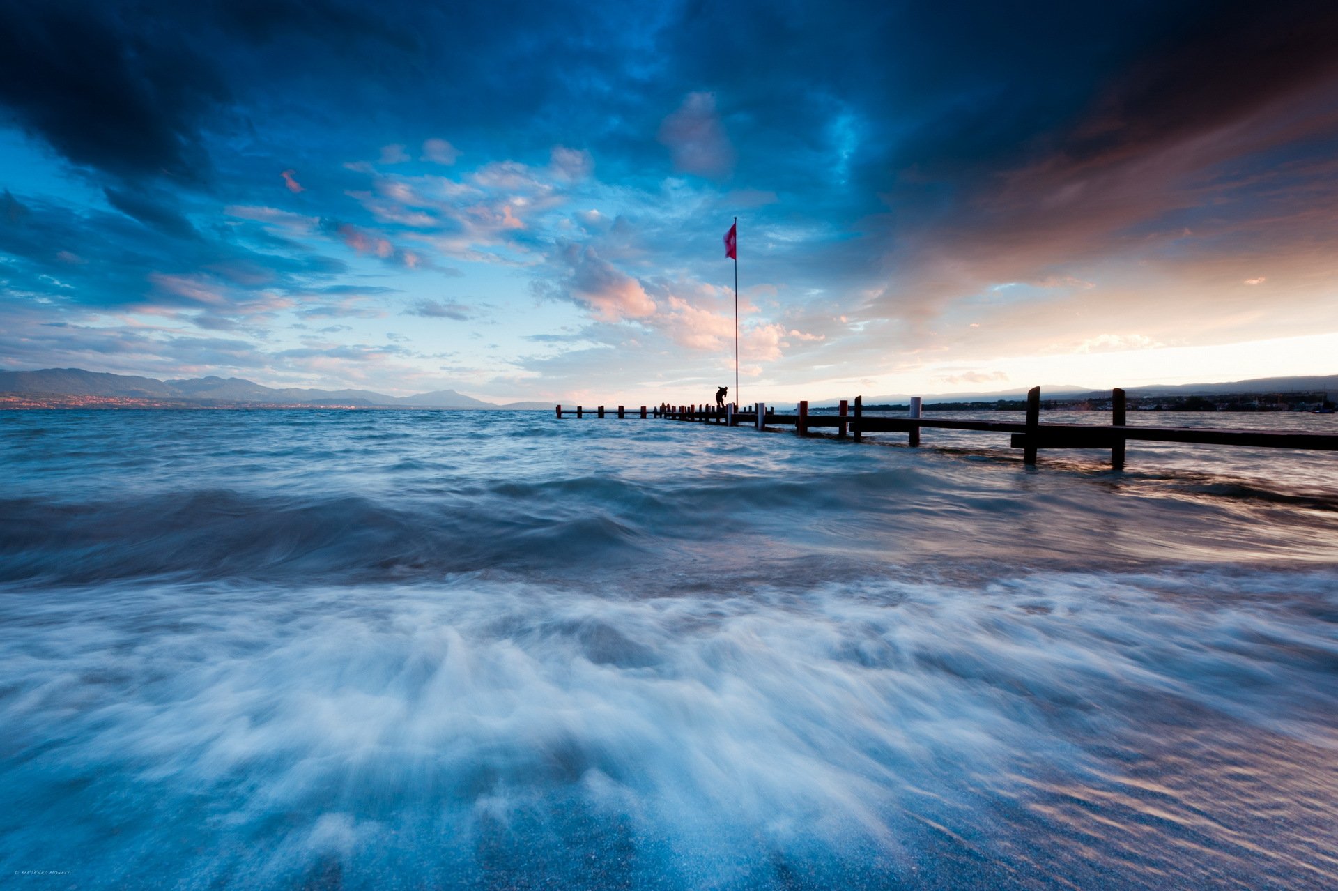 Magnifique pont de paysage sortant de la mer - fond d'écran de bureau