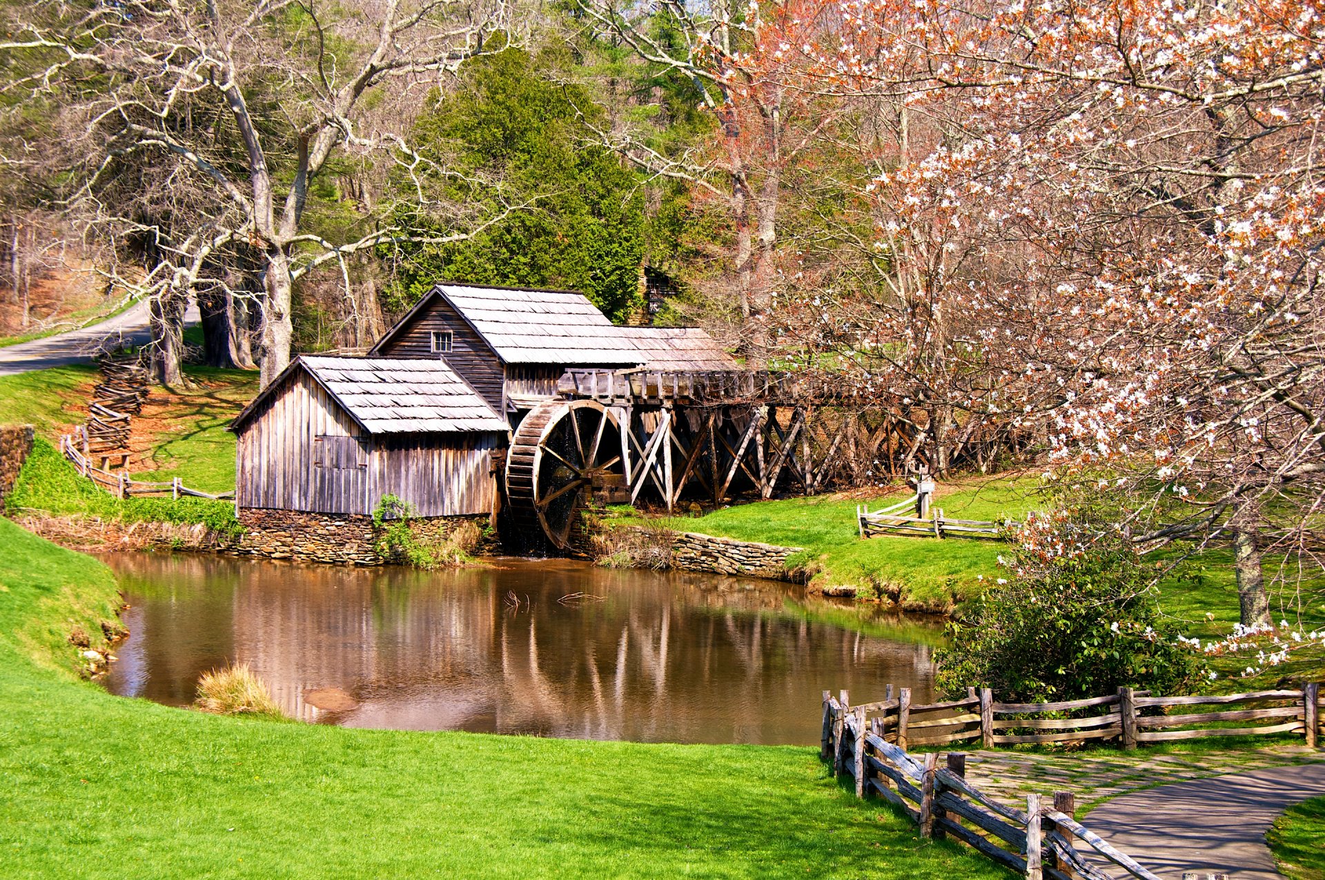 Moulin pittoresque insolite près de l étang - fond d'écran de bureau
