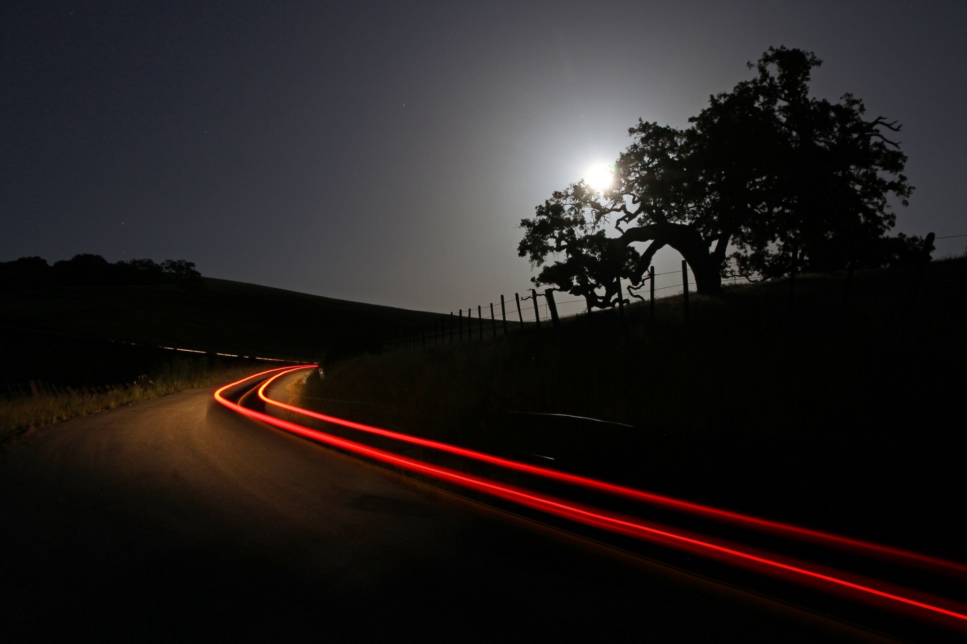Tags:ciel, lune, nuit, arbres, route, lumières