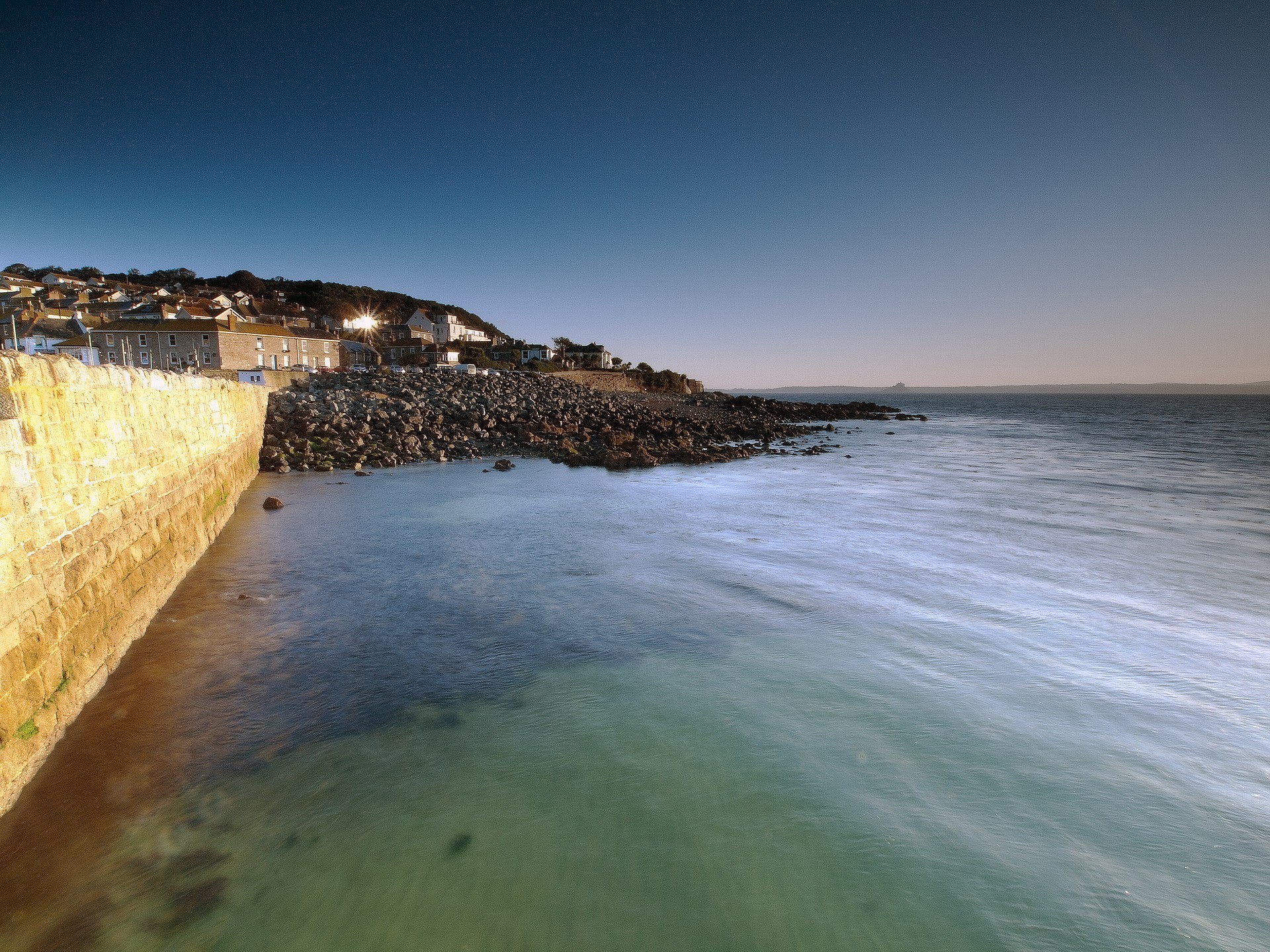 Soirée au bord de la mer rocheuse - fond d'écran de bureau