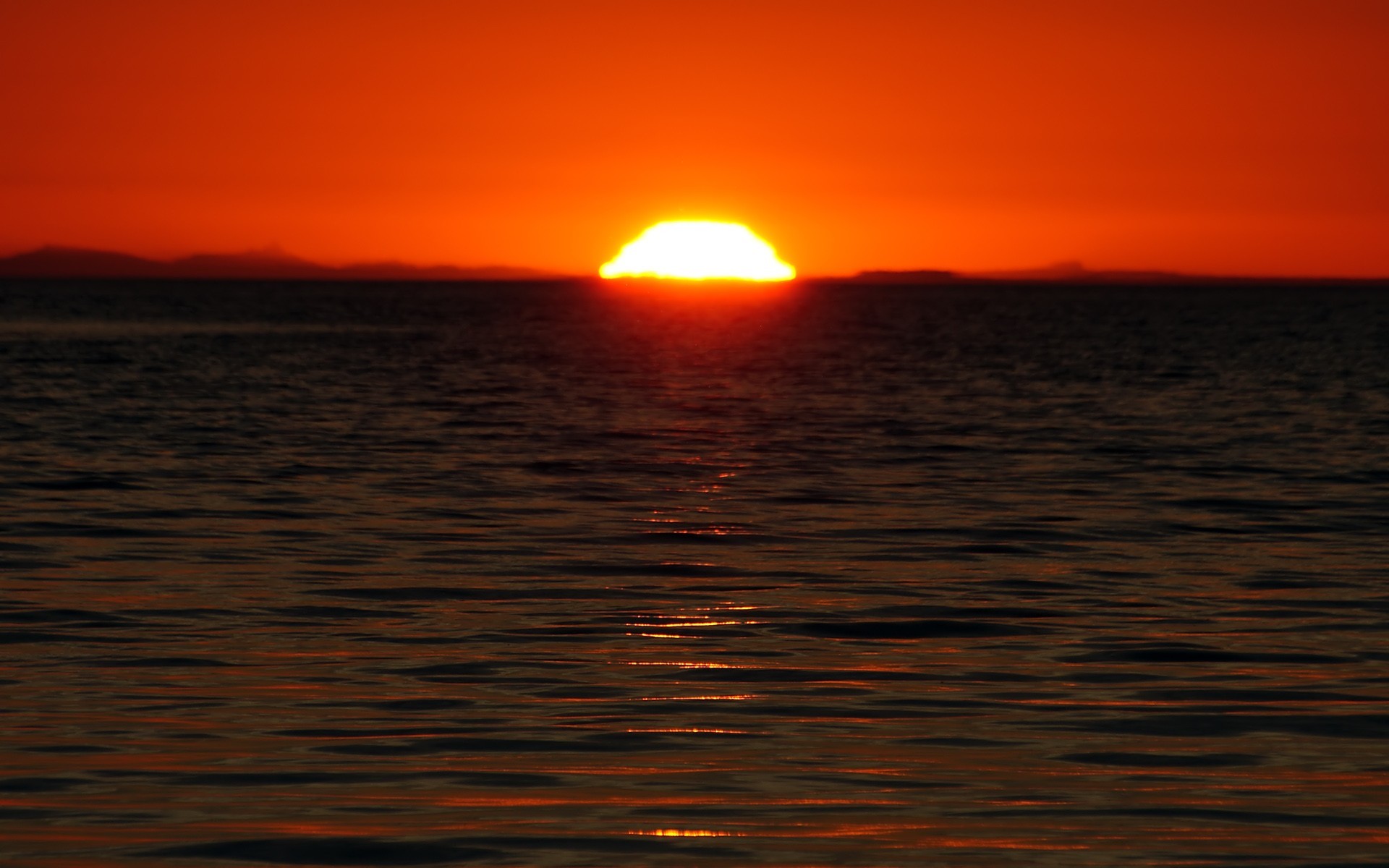 Le soleil rouge est tombé dans l eau - fond d'écran de bureau