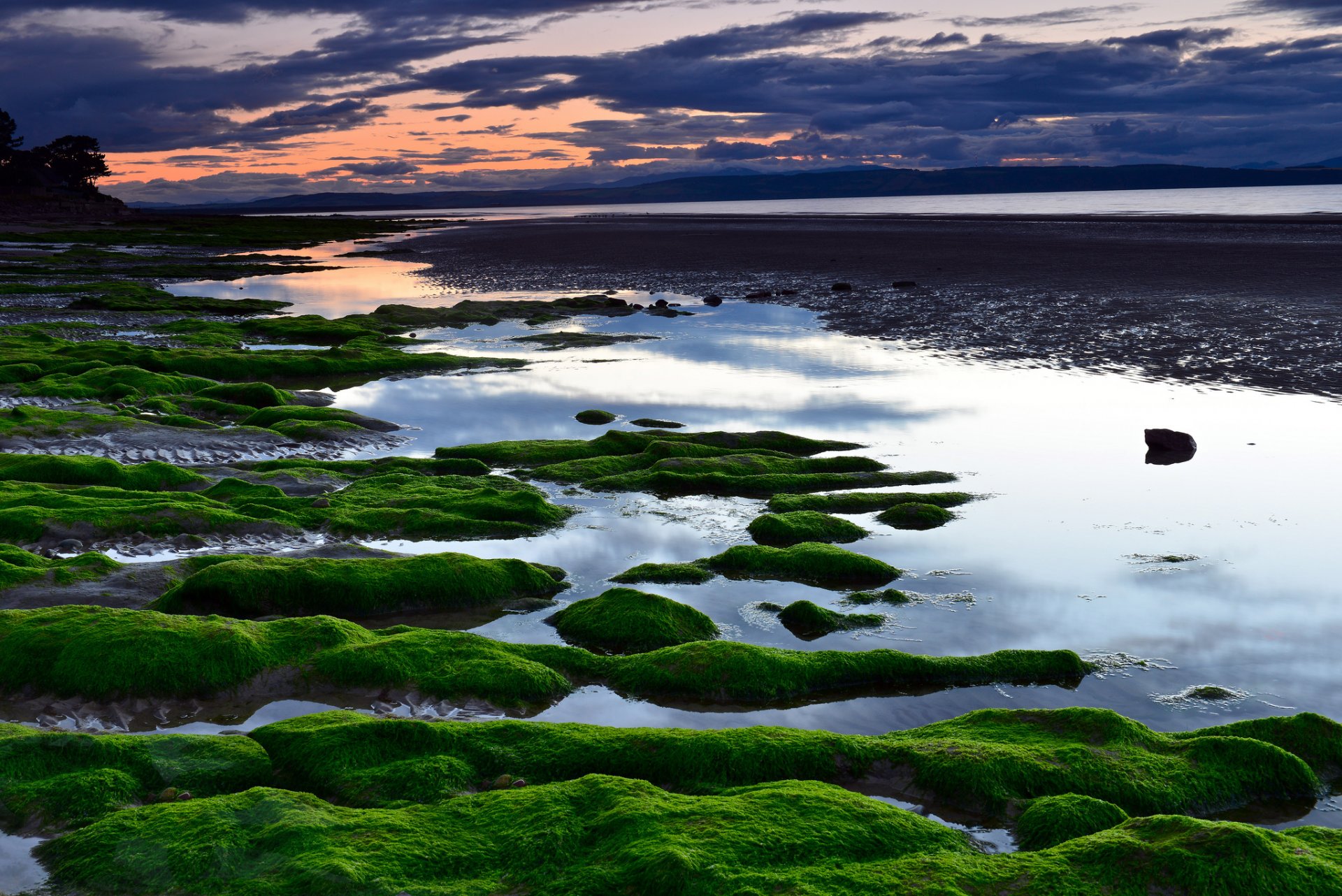 Tags:mer, plage, algues, coucher de soleil