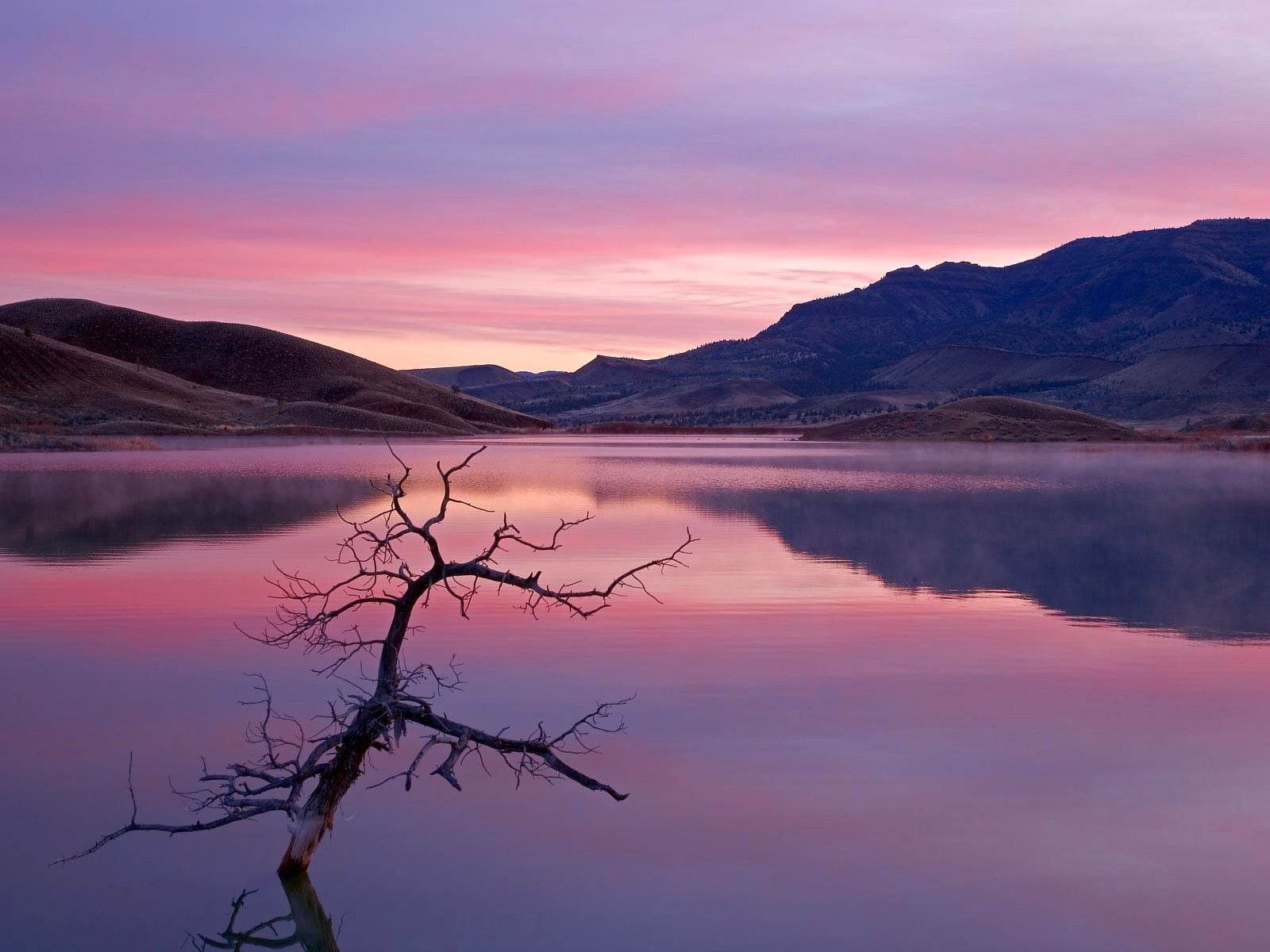Arbre nu sur fond de coucher de soleil écarlate - fond d'écran de téléphone
