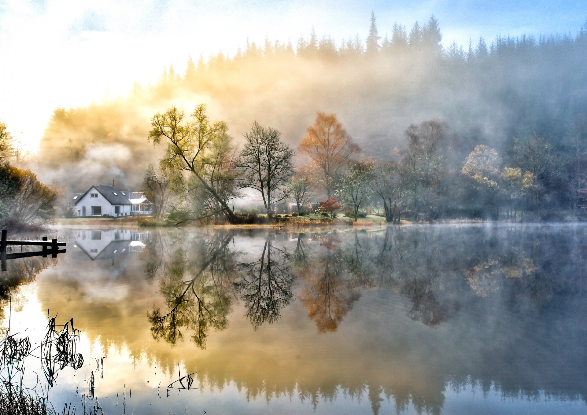 Tags:nature, ciel, nuages, paysage, lac, eau, arbres, automne, maisons