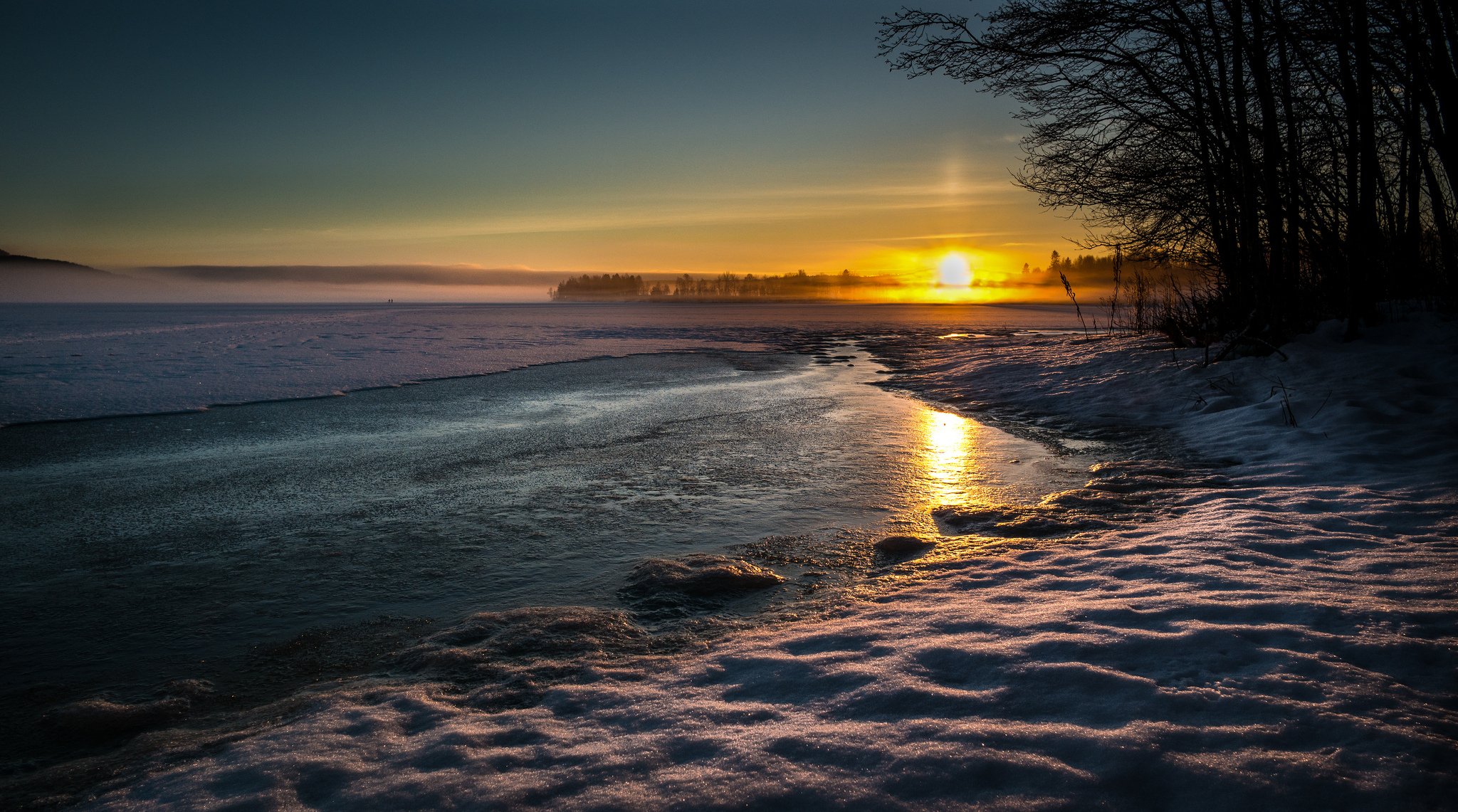 Tags:nature, paysage, hiver, neige, eau, soir, coucher de soleil, soleil