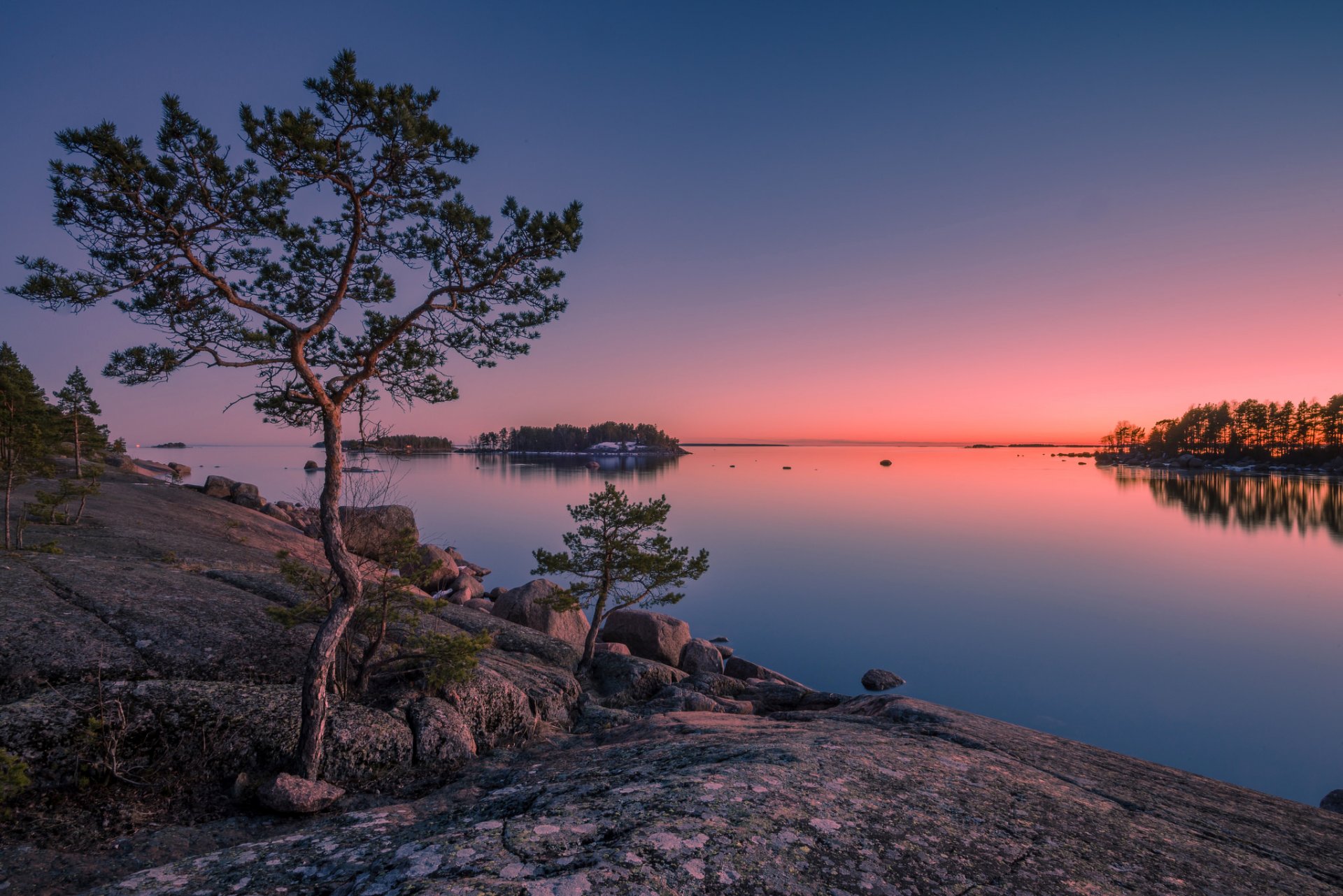 Tags:ciel, lueur, lac, pierres, roches, arbre, nature