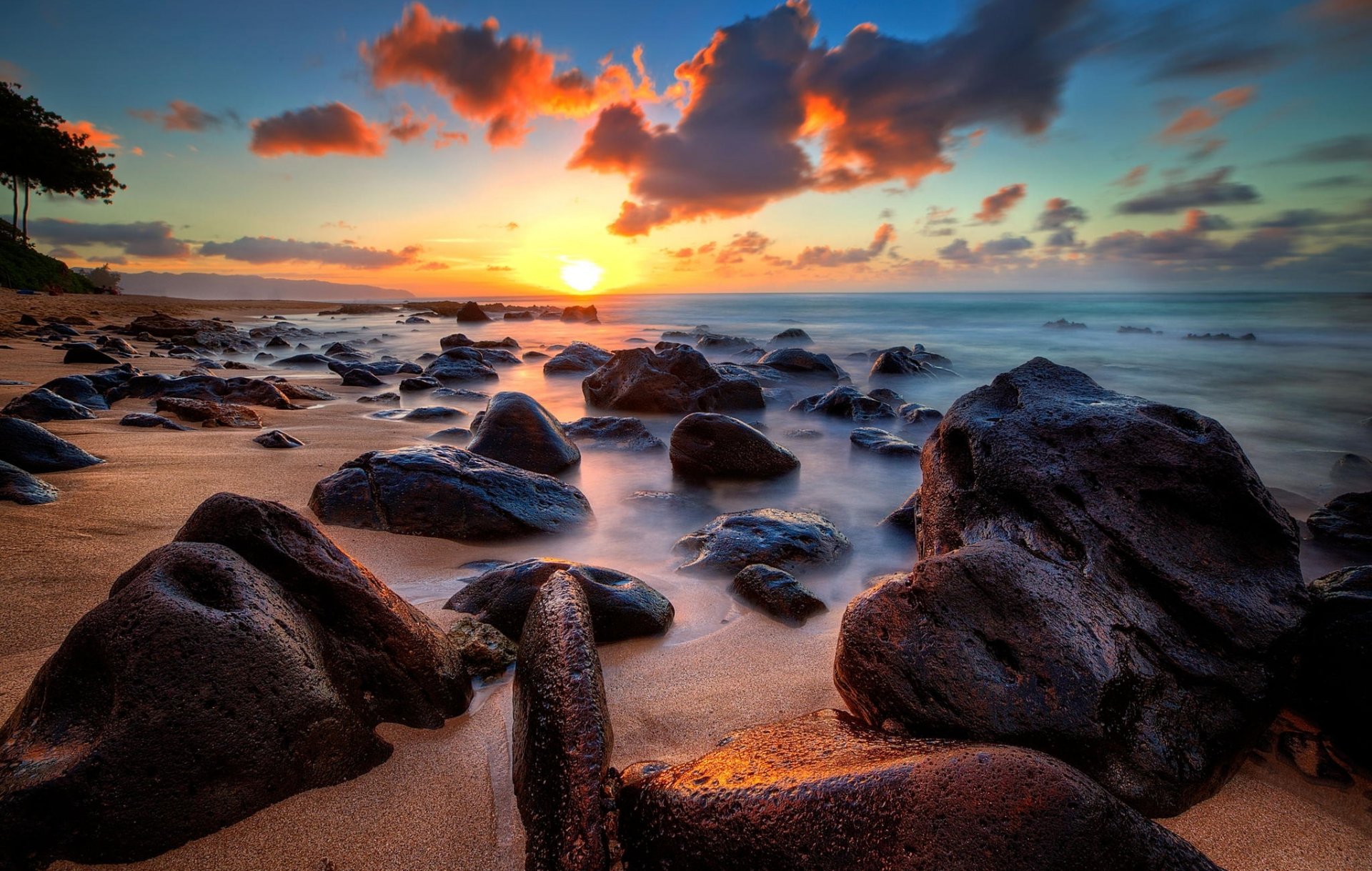 Tags:pierres, océan, aube, paysage, ciel, horizon