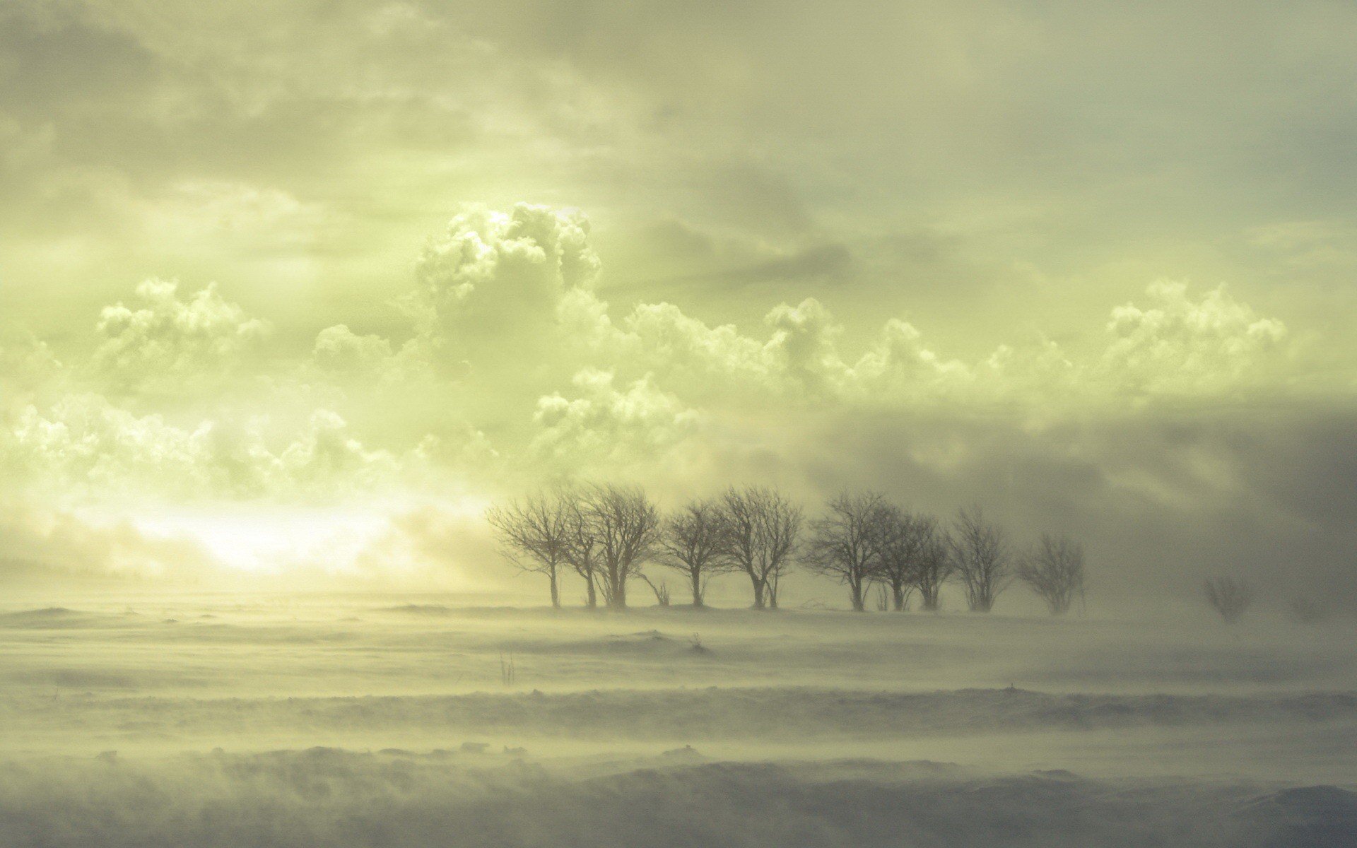 arbres nuages neige