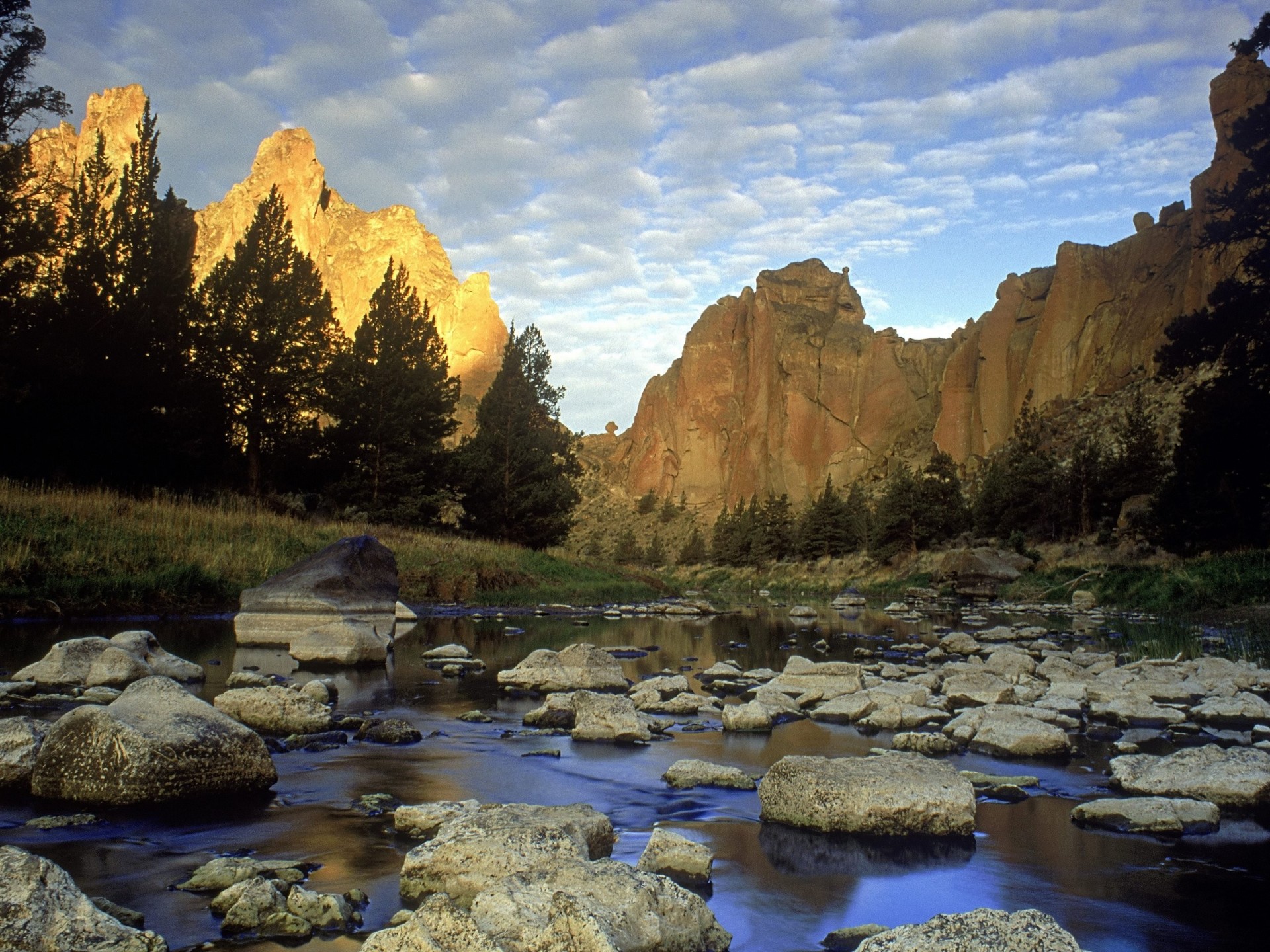 Lac avec des pierres, rocher avec des arbres - fond d'écran de téléphone
