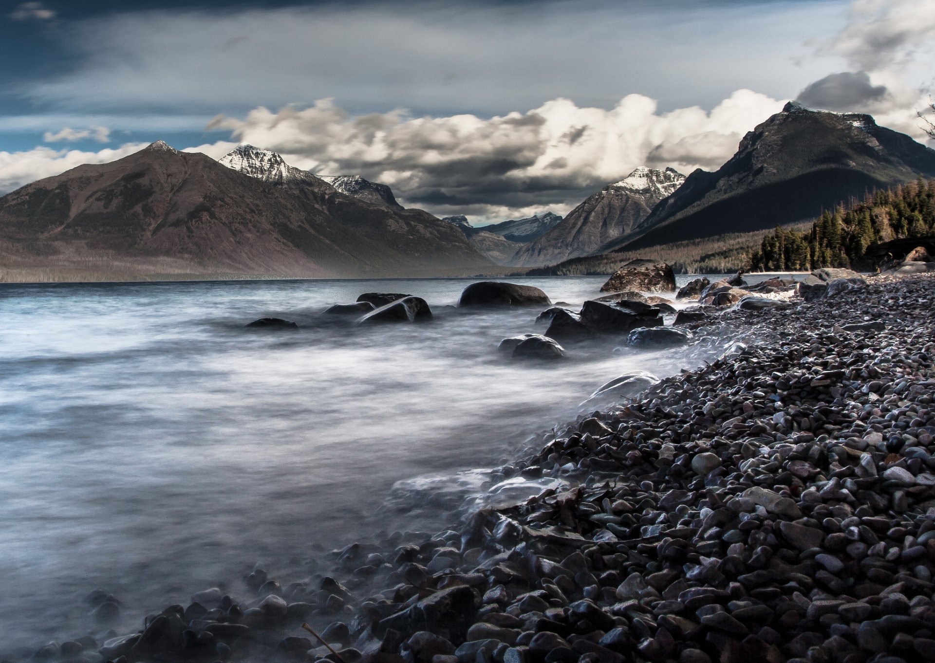 Tags:nature, montagnes, lac, hiver, forêt, paysage, nuages