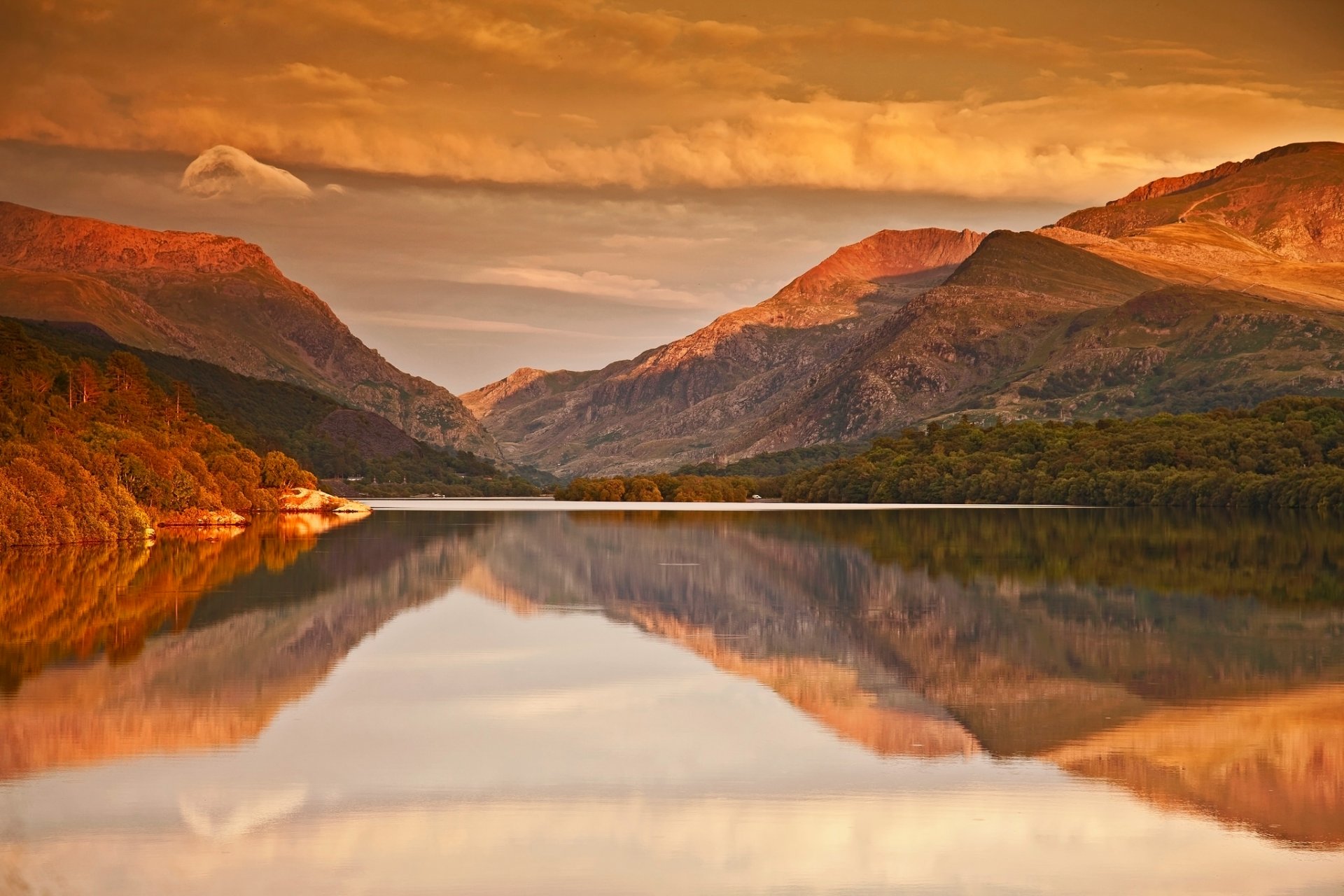 Tags:ciel, nuages, montagnes, lac, réflexion, automne, arbres