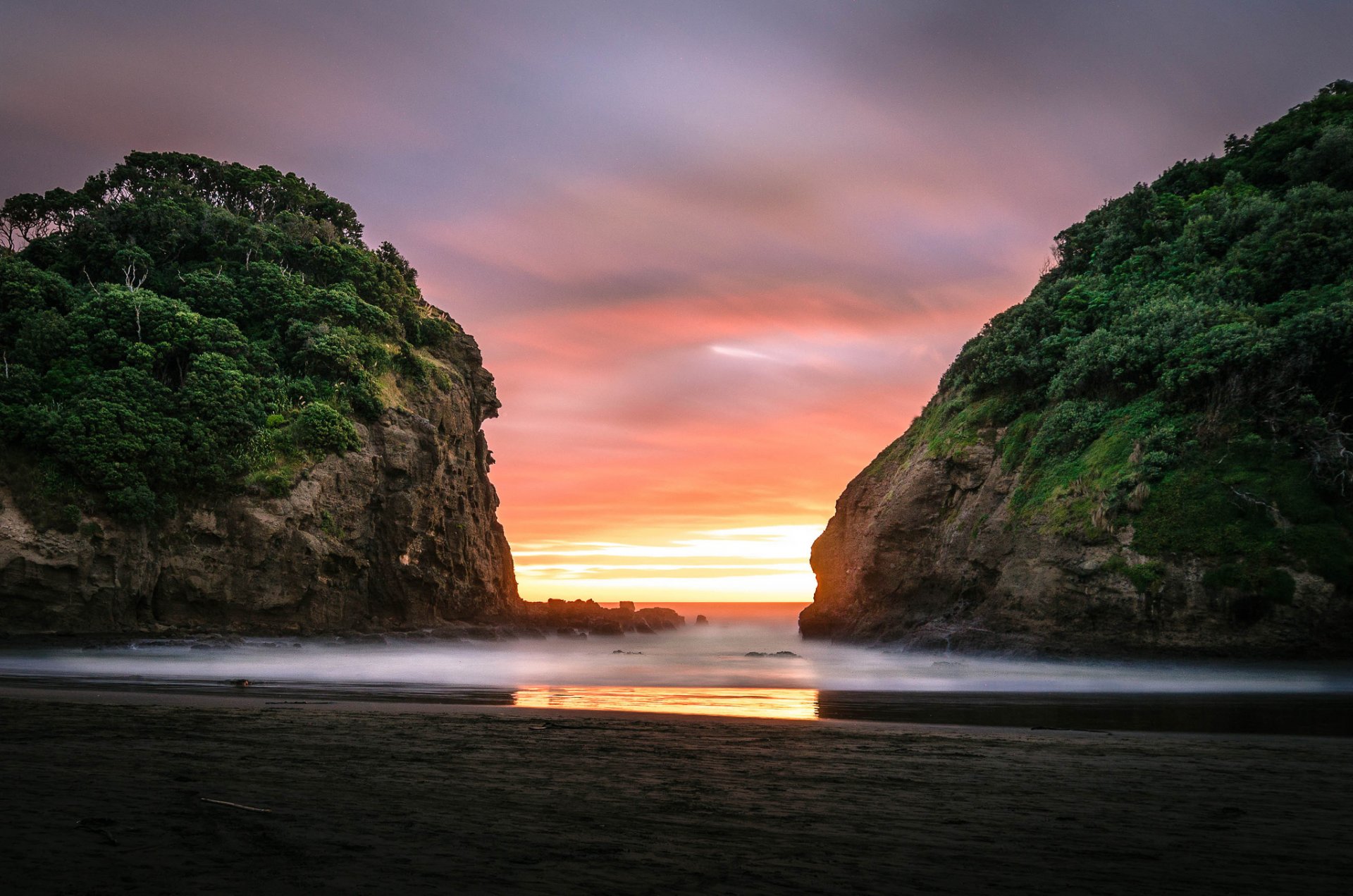 Tags:bethells plage, auckland, nz, aube, plage, rochers, océan