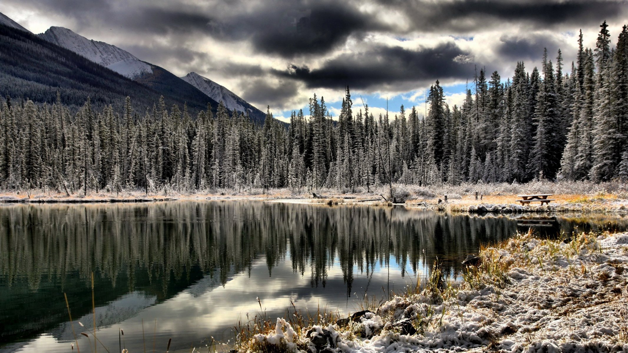 Paysage de lac et de montagnes avec réflexion - fond d'écran de téléphone