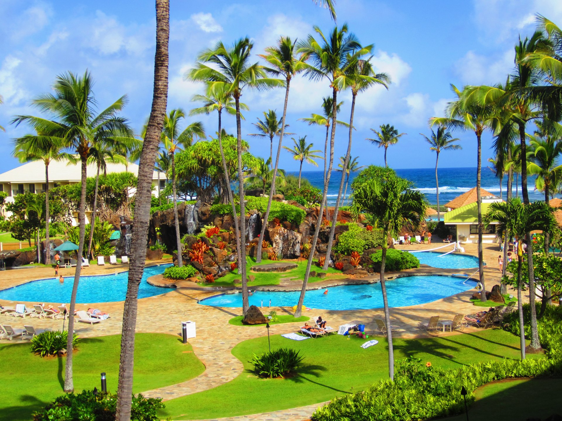 ciel tropiques palmier piscine loisirs gens
