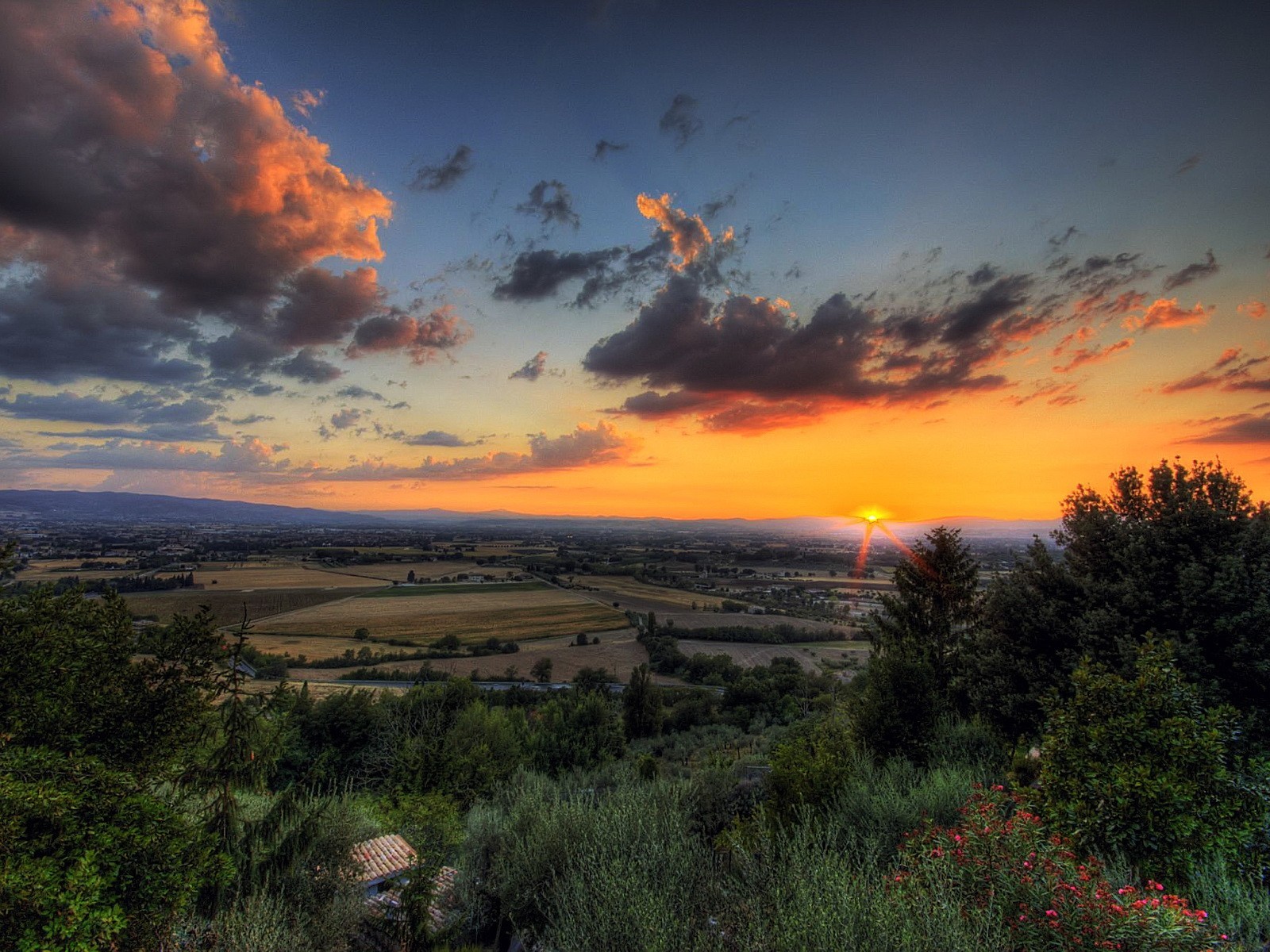 Tags:nuages, champs, coucher de soleil, arbres