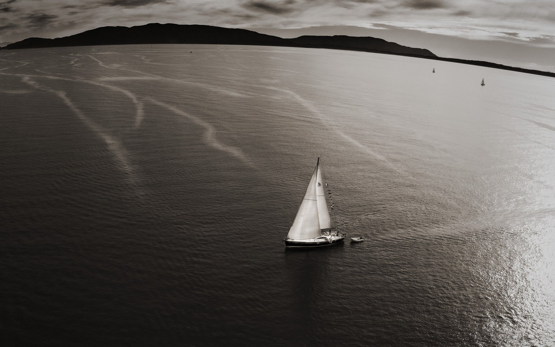 yacht yachts voile eau mer surface montagnes loin horizon vue d altitude couleur paysage