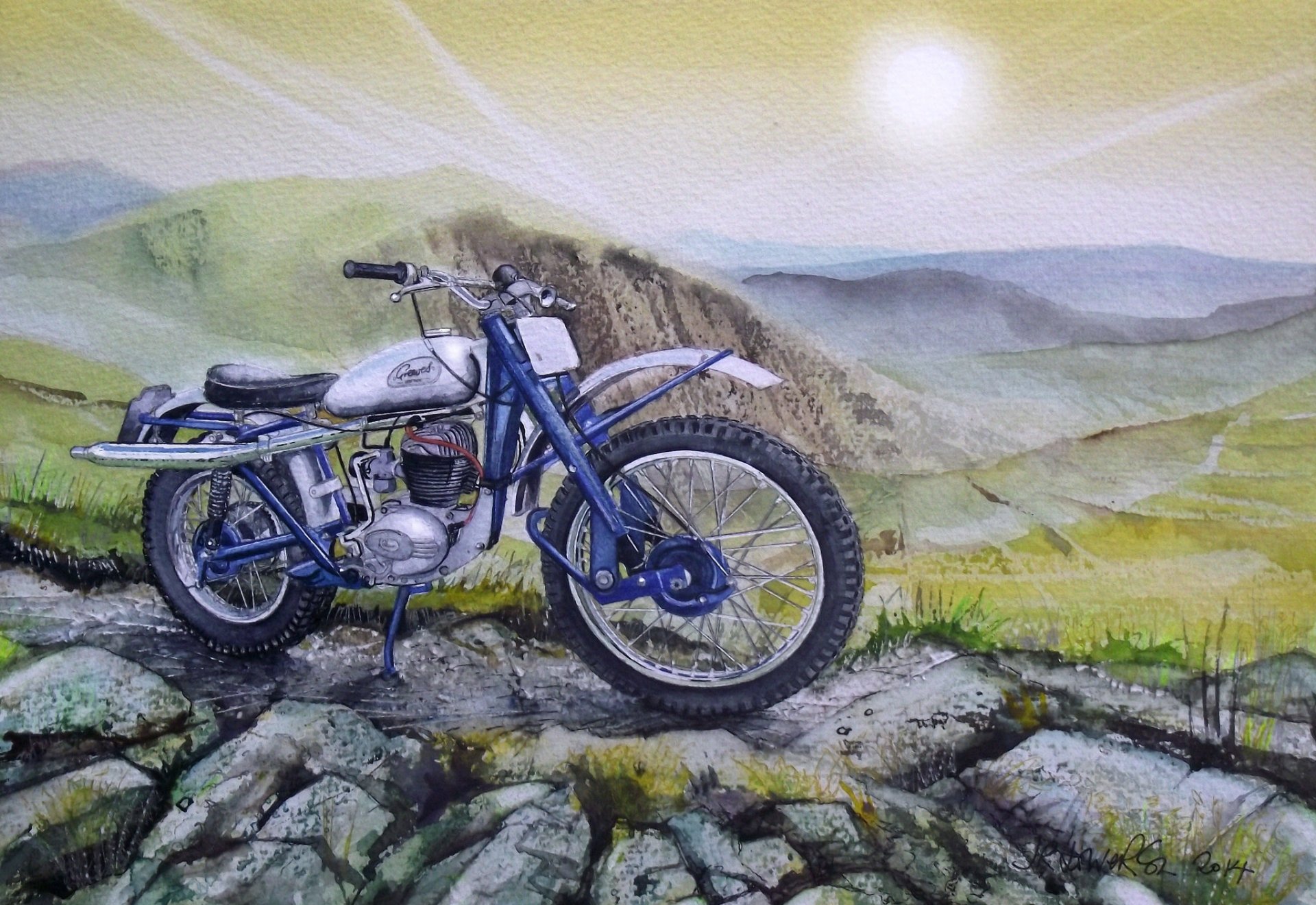 Beau dessin de moto dans les montagnes - fond d'écran de bureau