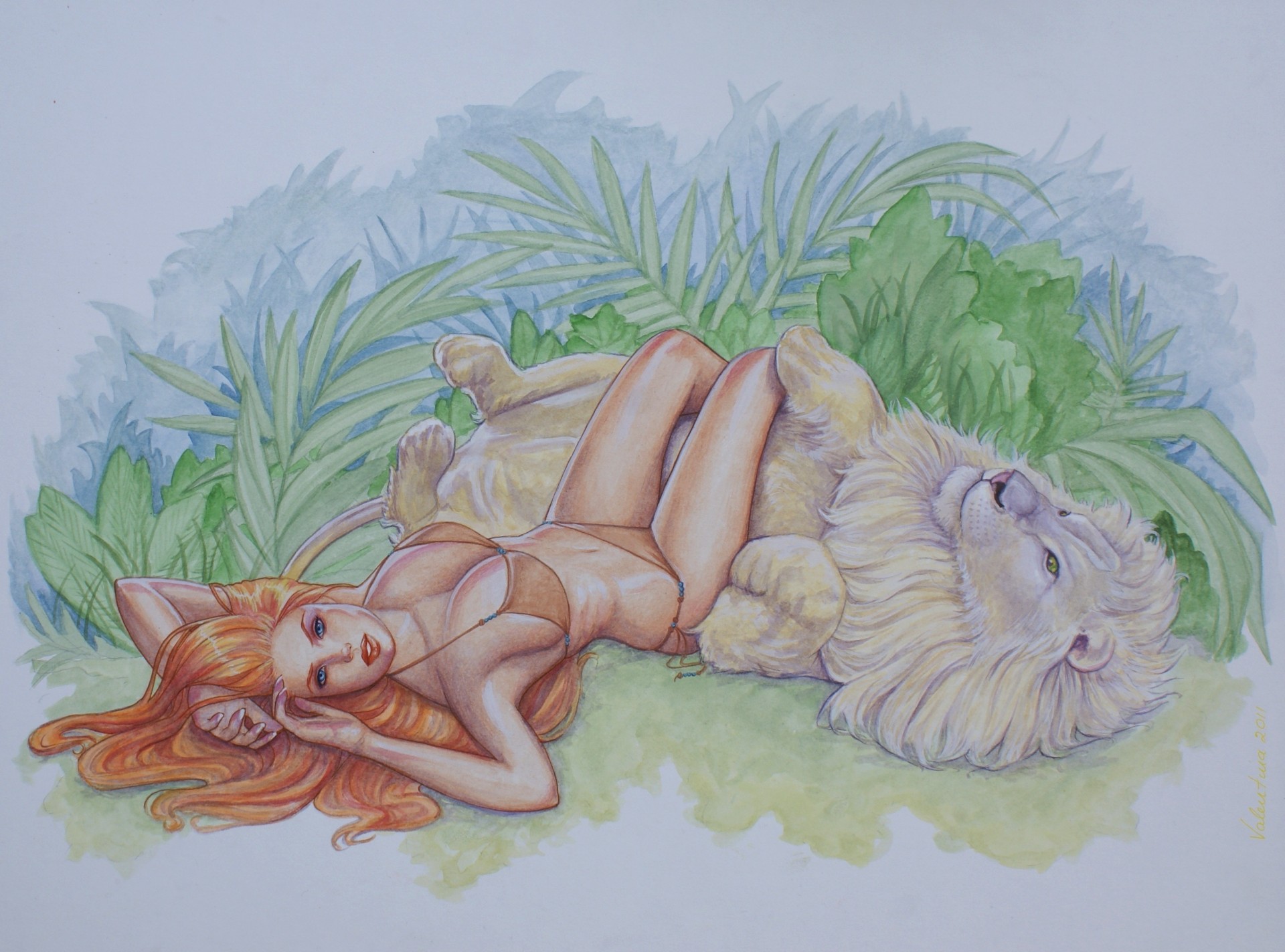 Tags:fille, peinture, cheveux, bus, se trouve, vue, crinière, animal, prédateur, lion