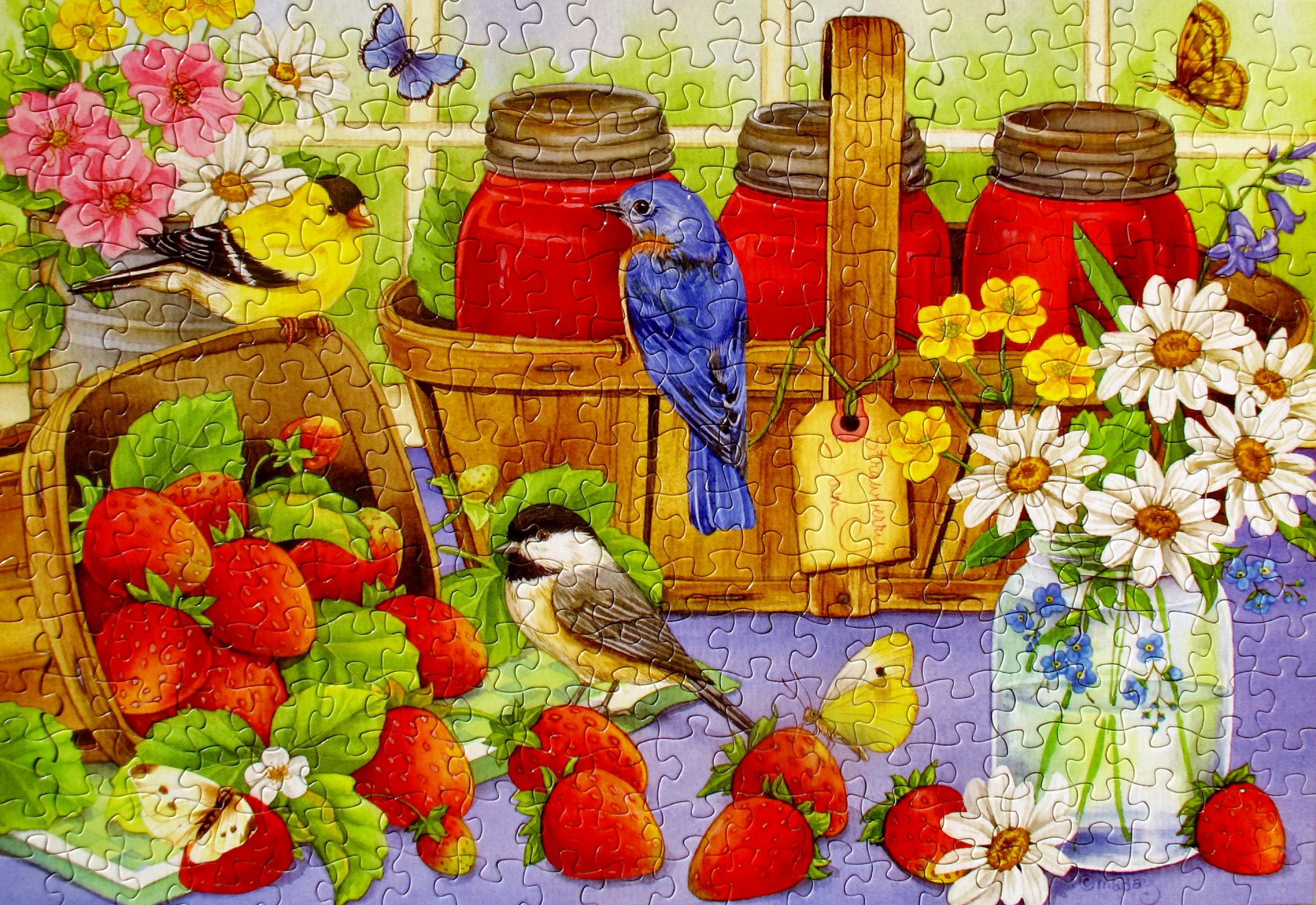 Tags:puzzles, oiseau, fraise, fleurs, papillon, panier