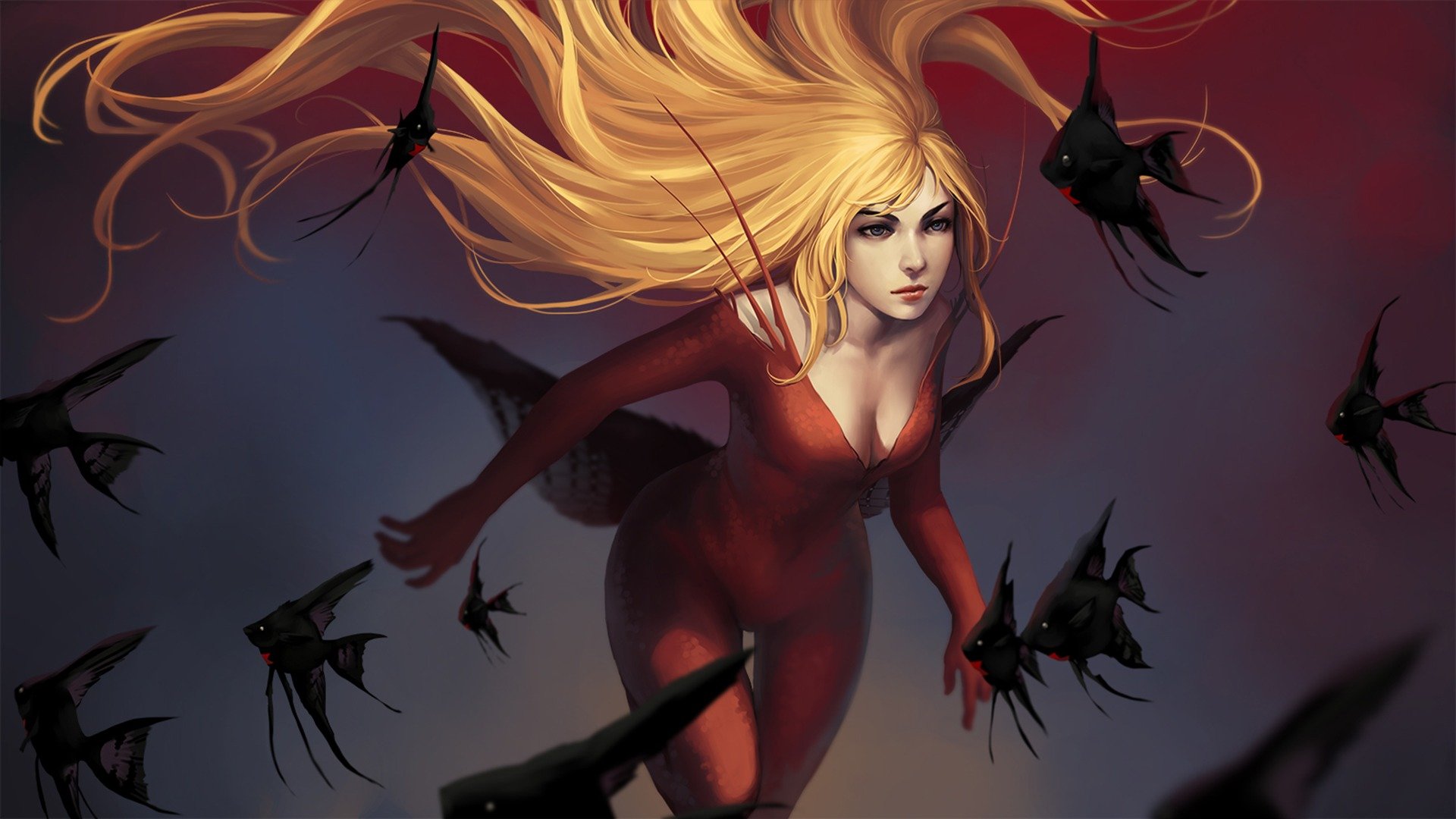 Fille blonde avec des cheveux flottants - fond d'écran de bureau