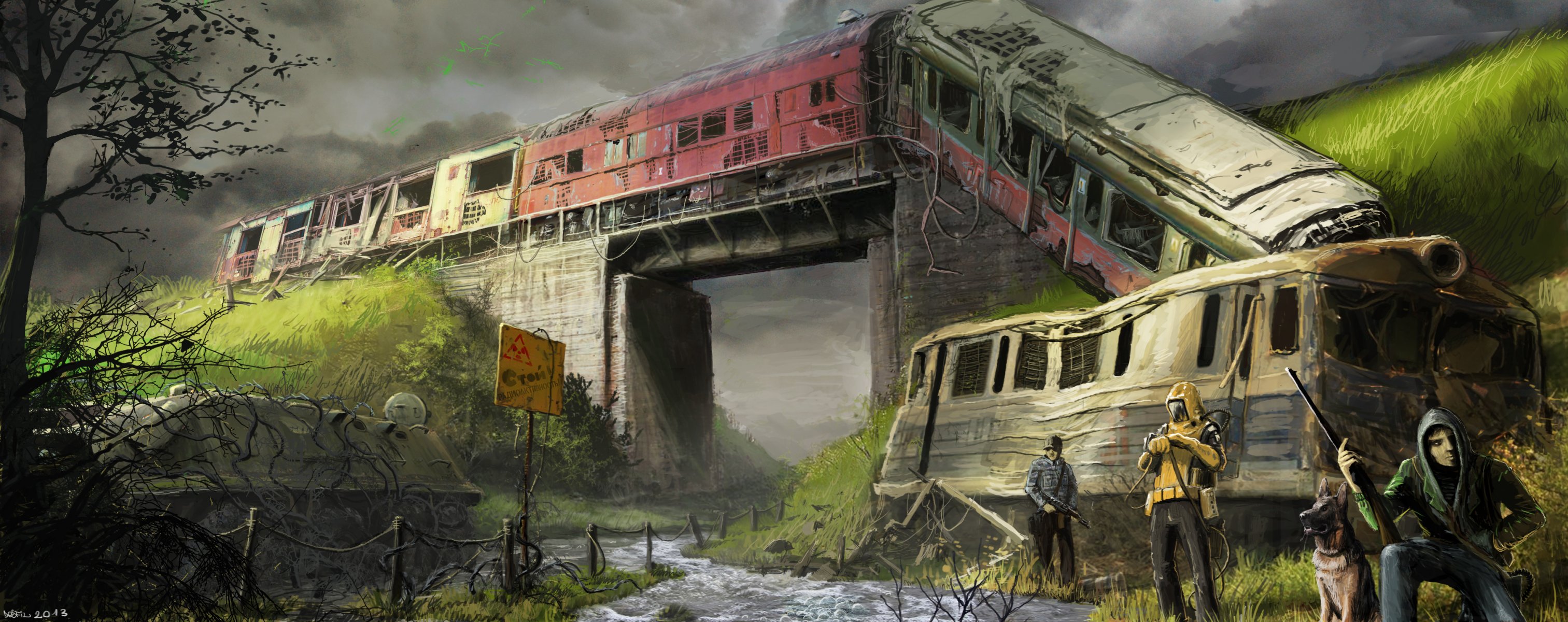 Harceleurs près d un train tombé - fond d'écran de bureau