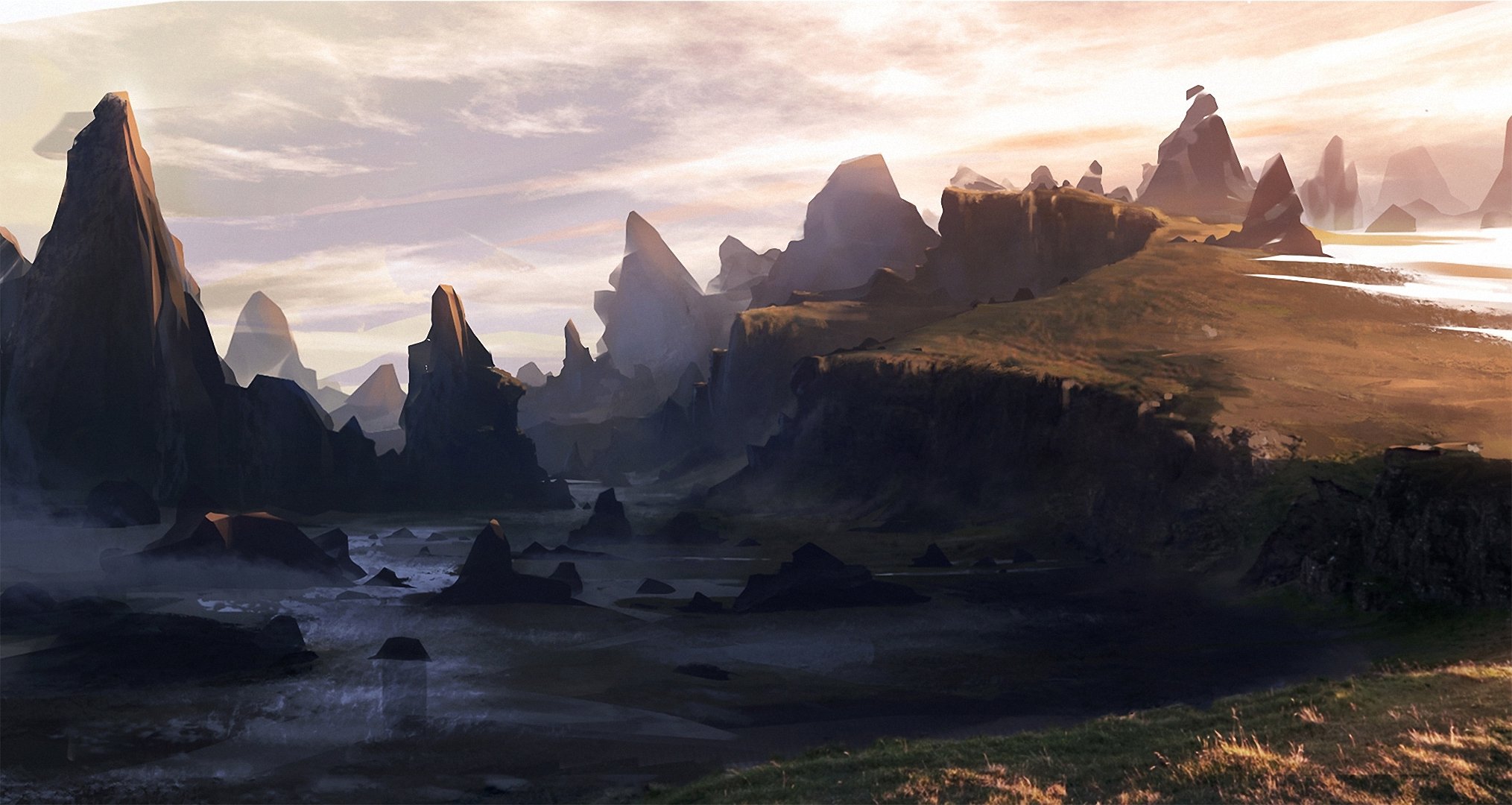 Terrain de montagne terne avec des rochers et un plan d eau - fond d'écran de bureau